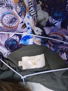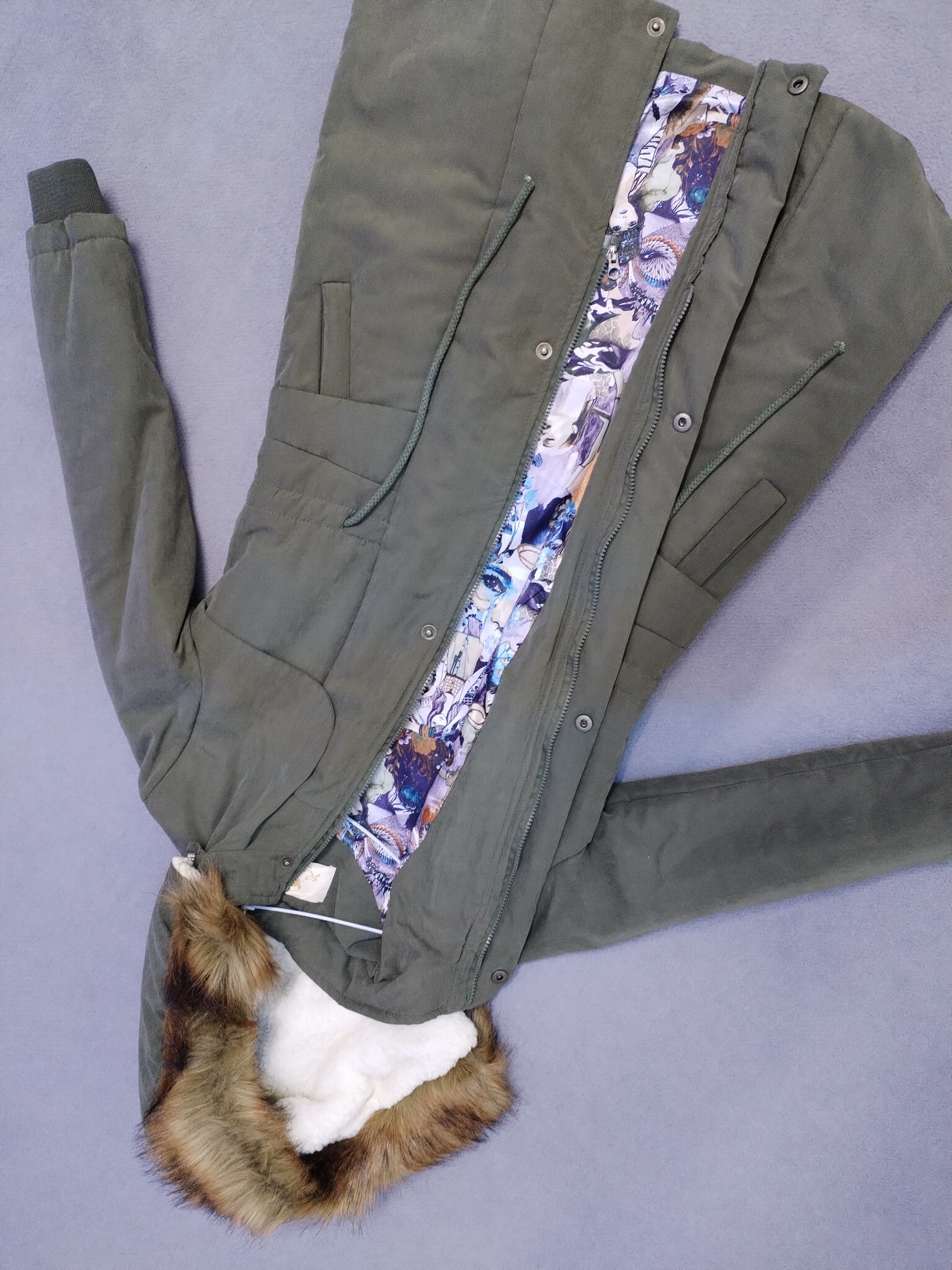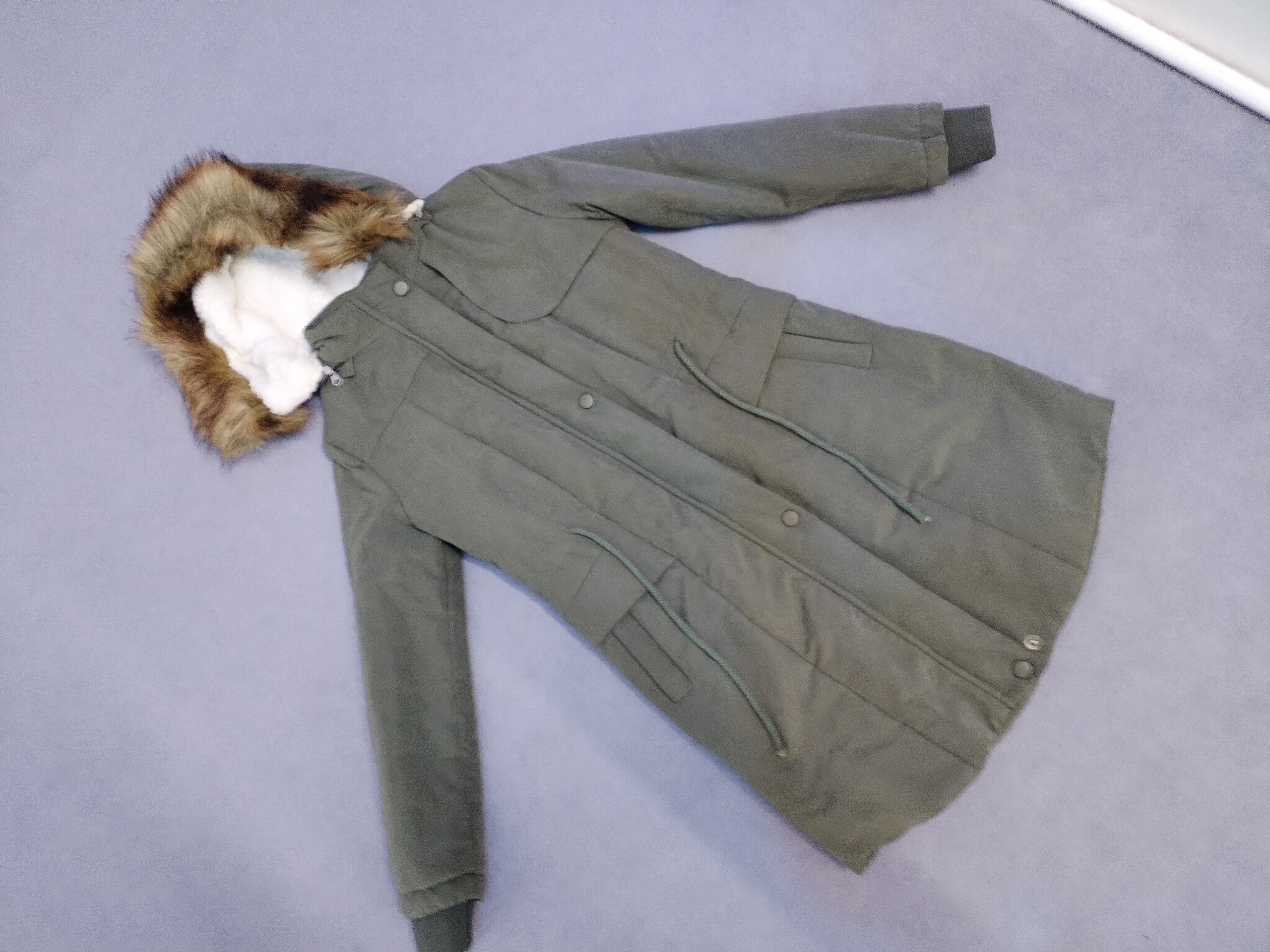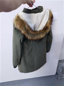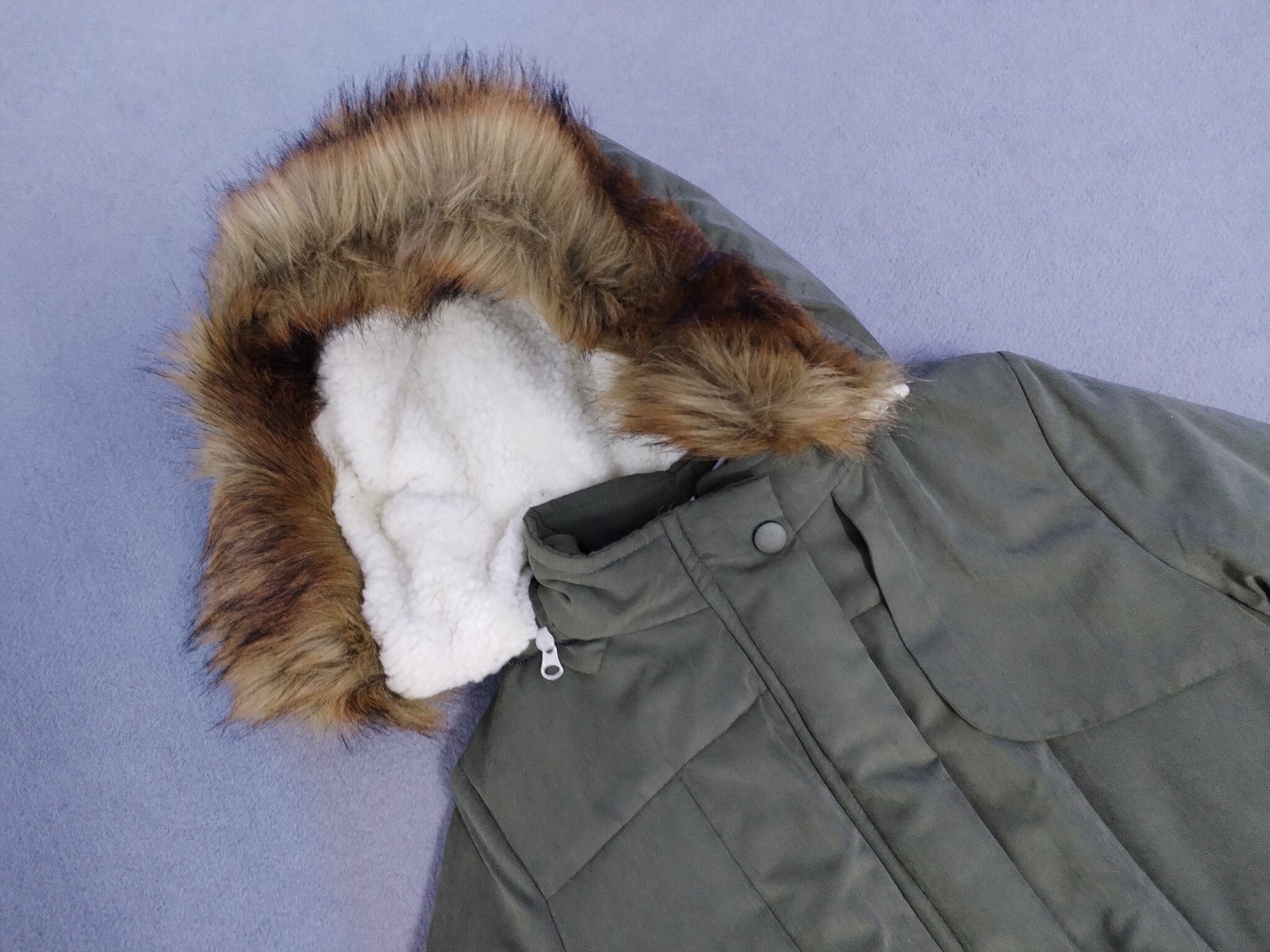 کاپشن زنانه زیتونی کلاه خزدار اکبند