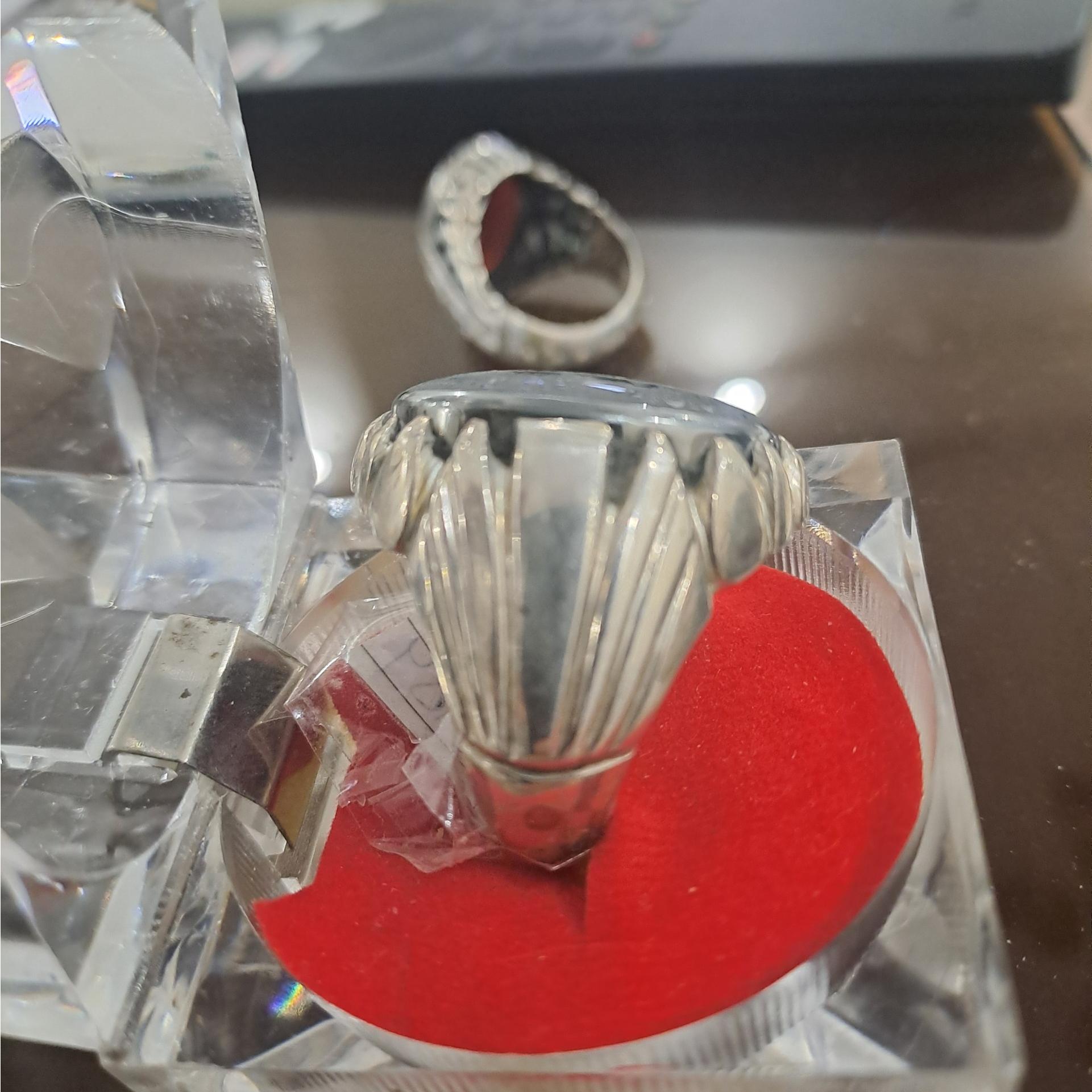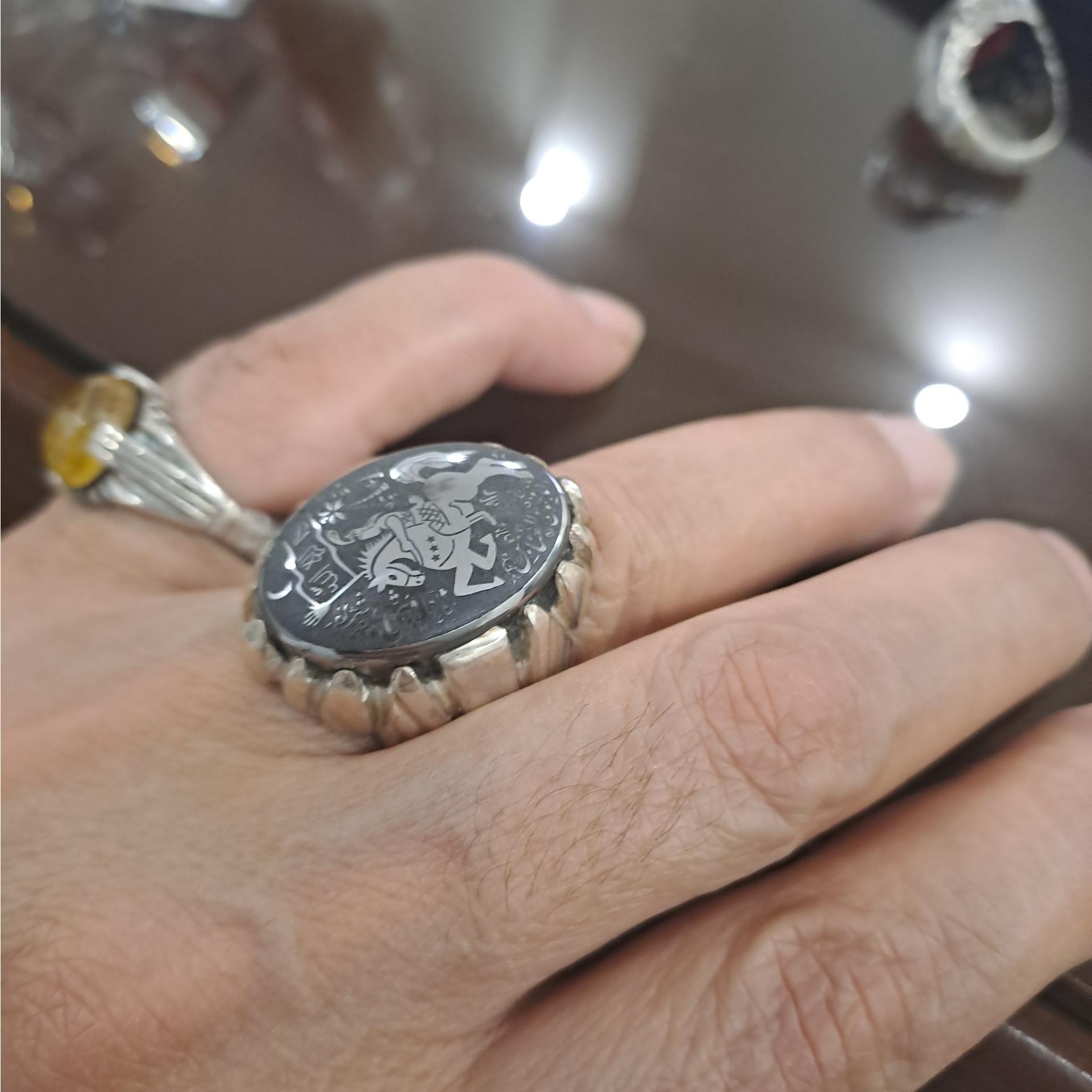 انگشتر حدید تصویری حضرت ابوالفضل رکاب یکتا پشت حدید زده سید وزن 23/56 گرم سایز 63