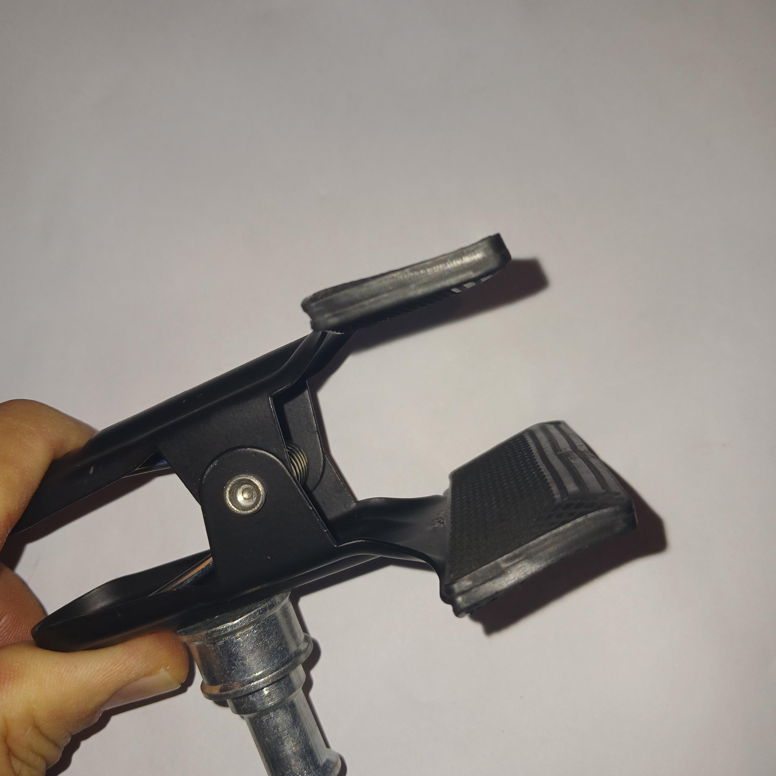 - گیره کلیپسی قدرتمند: دهانه گیره دارای نیروی فنری بالا و پدهای لاستیکی است که اجازه میدهد تا به انواع سطوح (مانند لبه میز، لبه درب، سهپایه یا پایه نور) با ضخامت حداکثر حدود 5 سانتیمتر متصل شود، بدون اینکه به سطح آسیب برساند یا بلغزد.