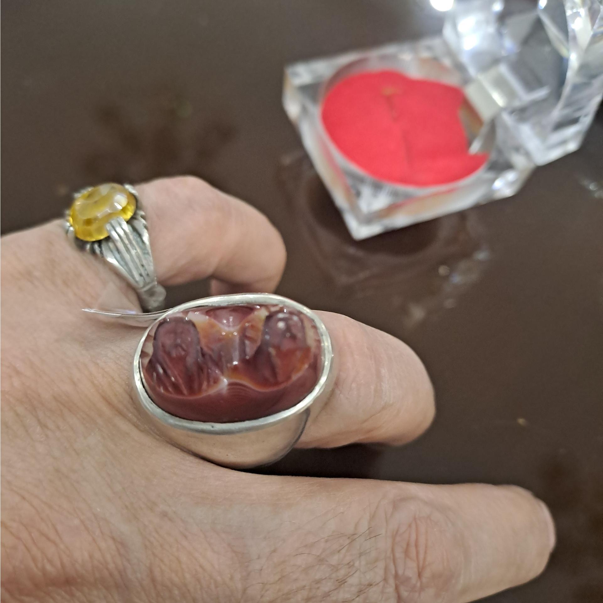 انگشتر عقیق دو شمایل دو کوهان تراش زیبا وزن 15/55 گرم سایز 62