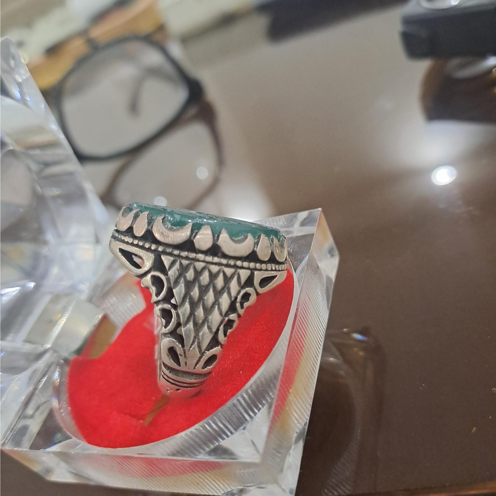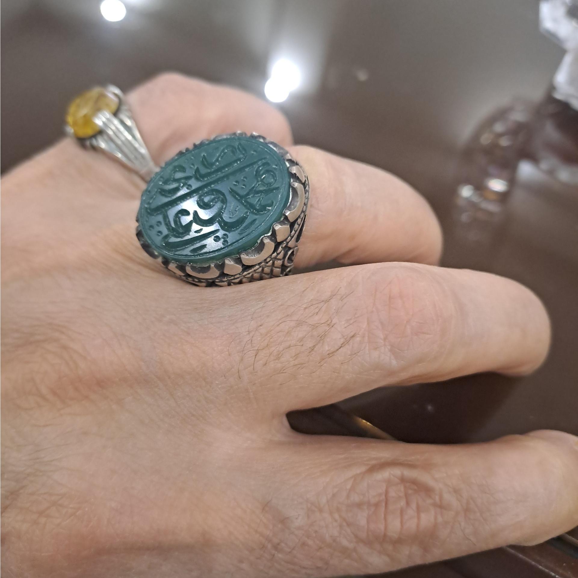 انگشتر عقیق سبز خط،