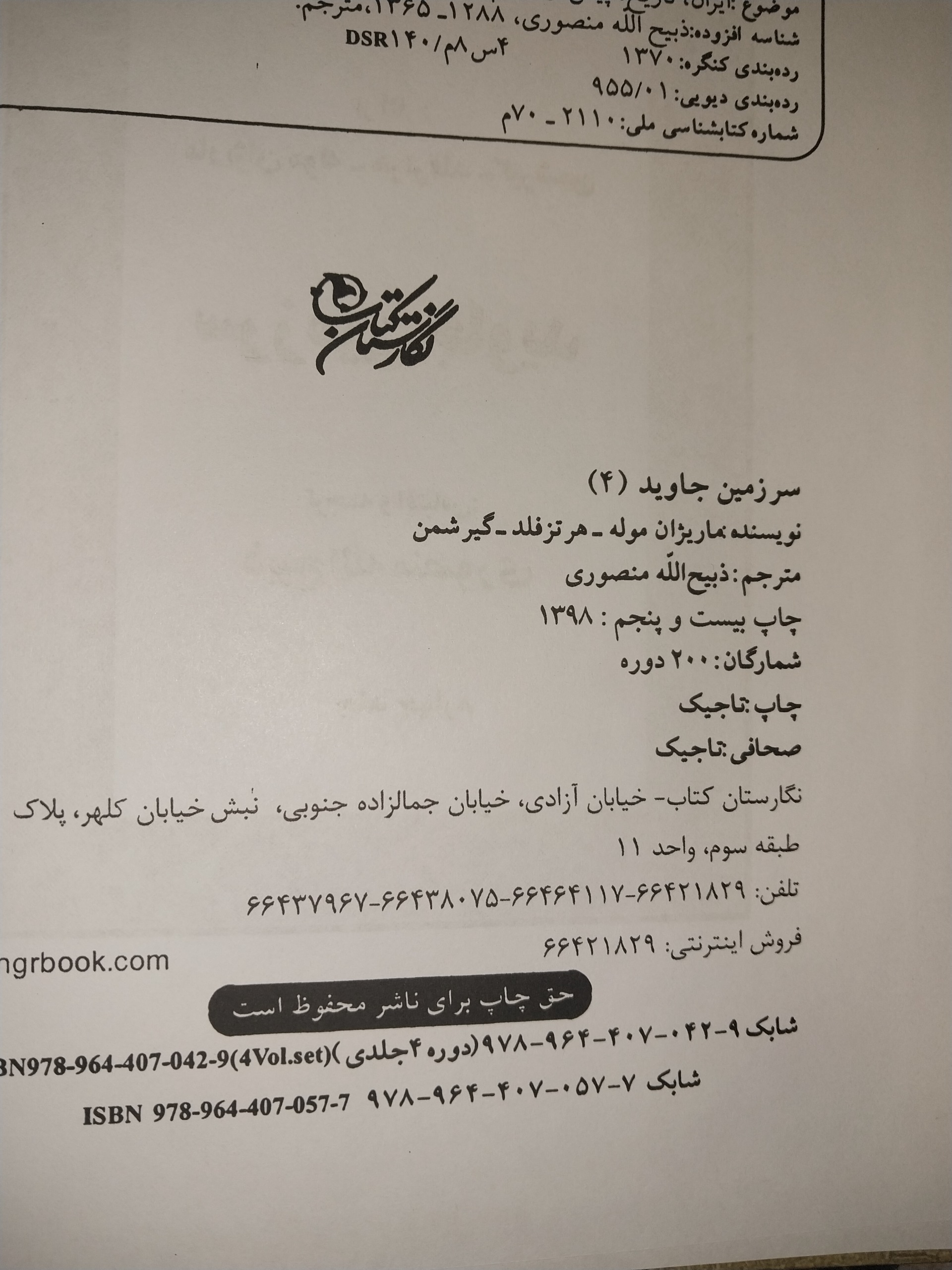 سرزمین جاوید ذبیح اله منصوری چهار جلدی