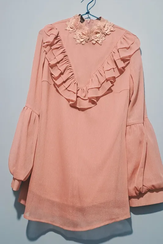شومیز کد 5 صورتی کمرنگ،بلند،سایز 38