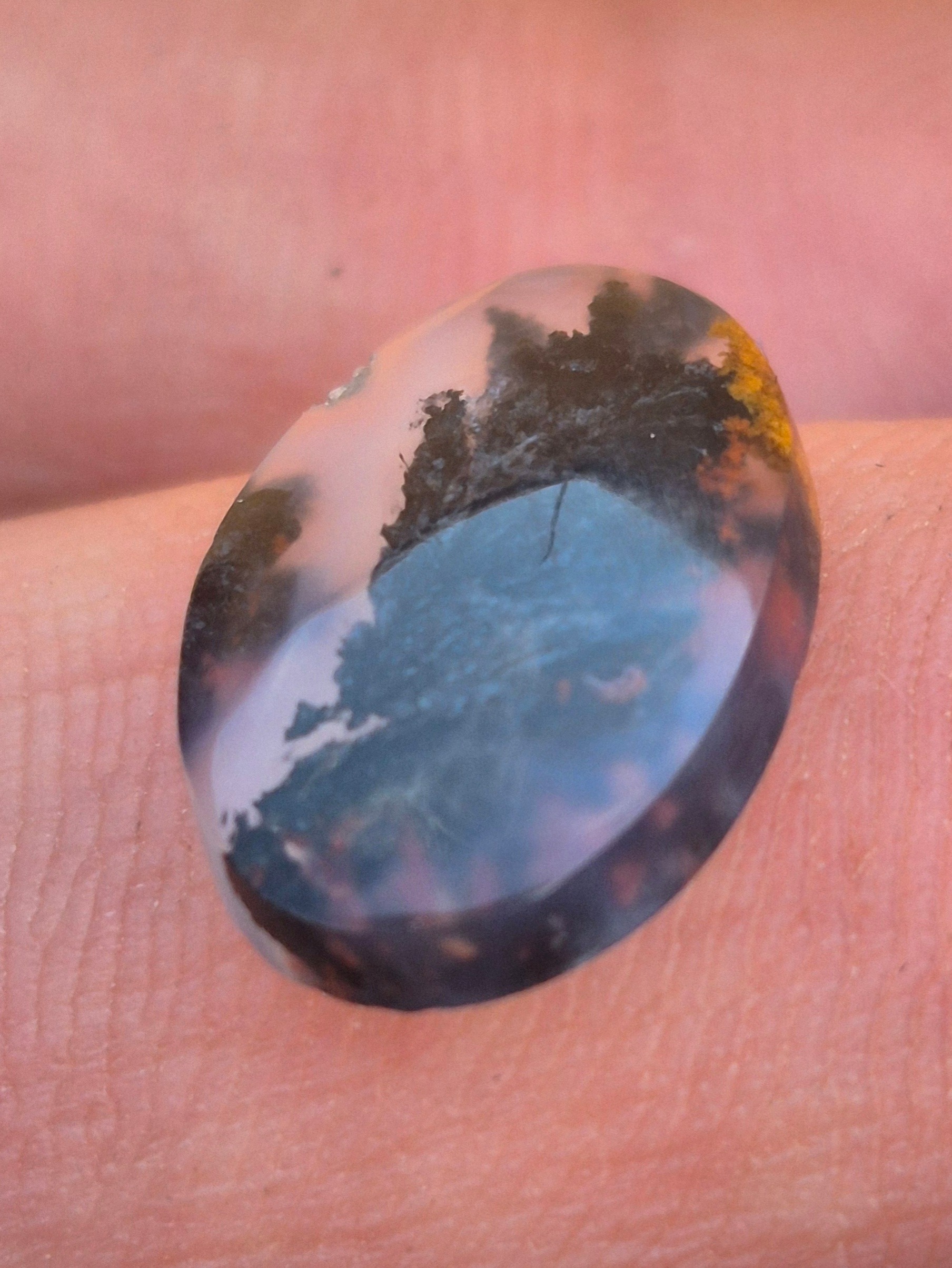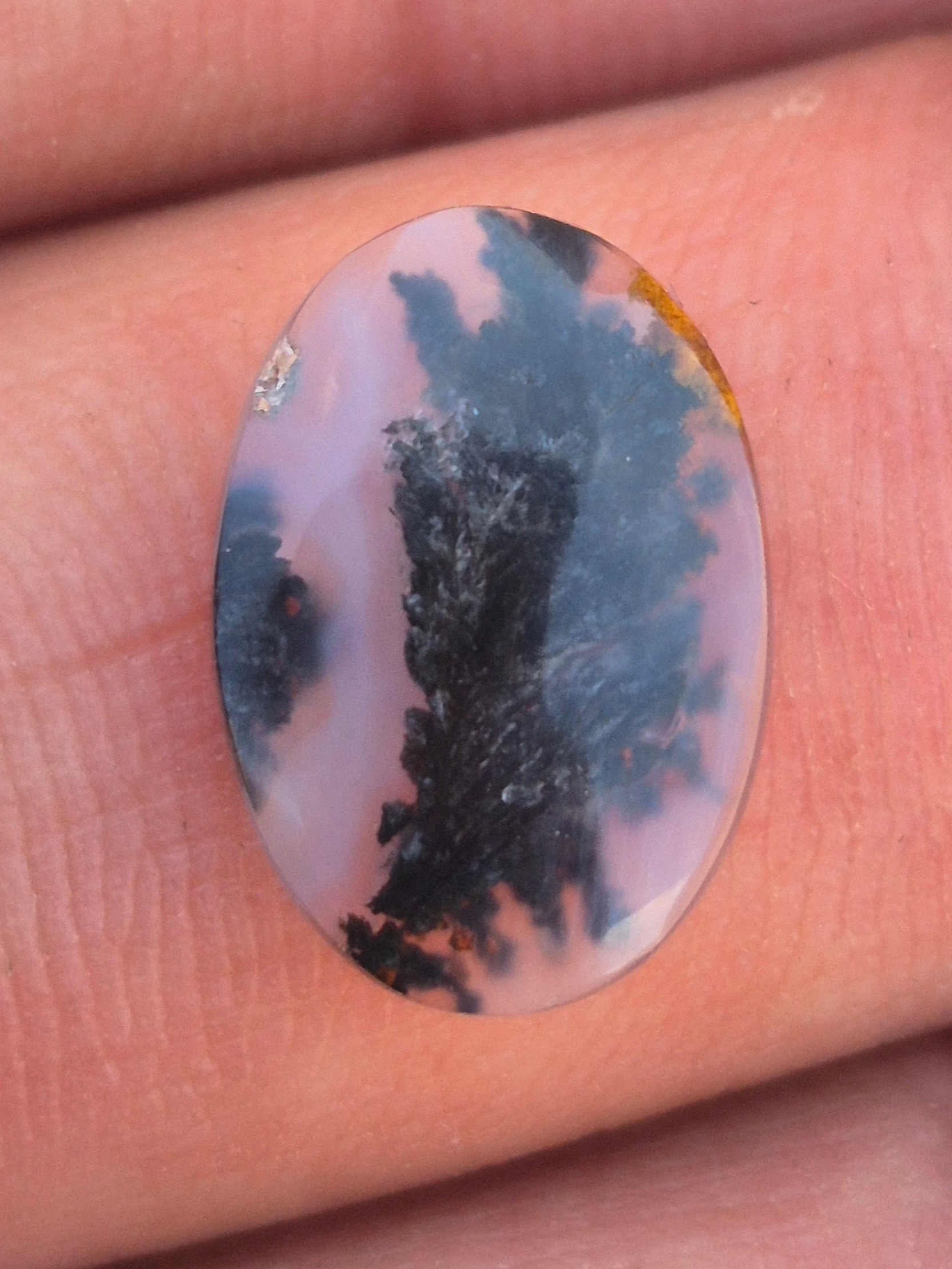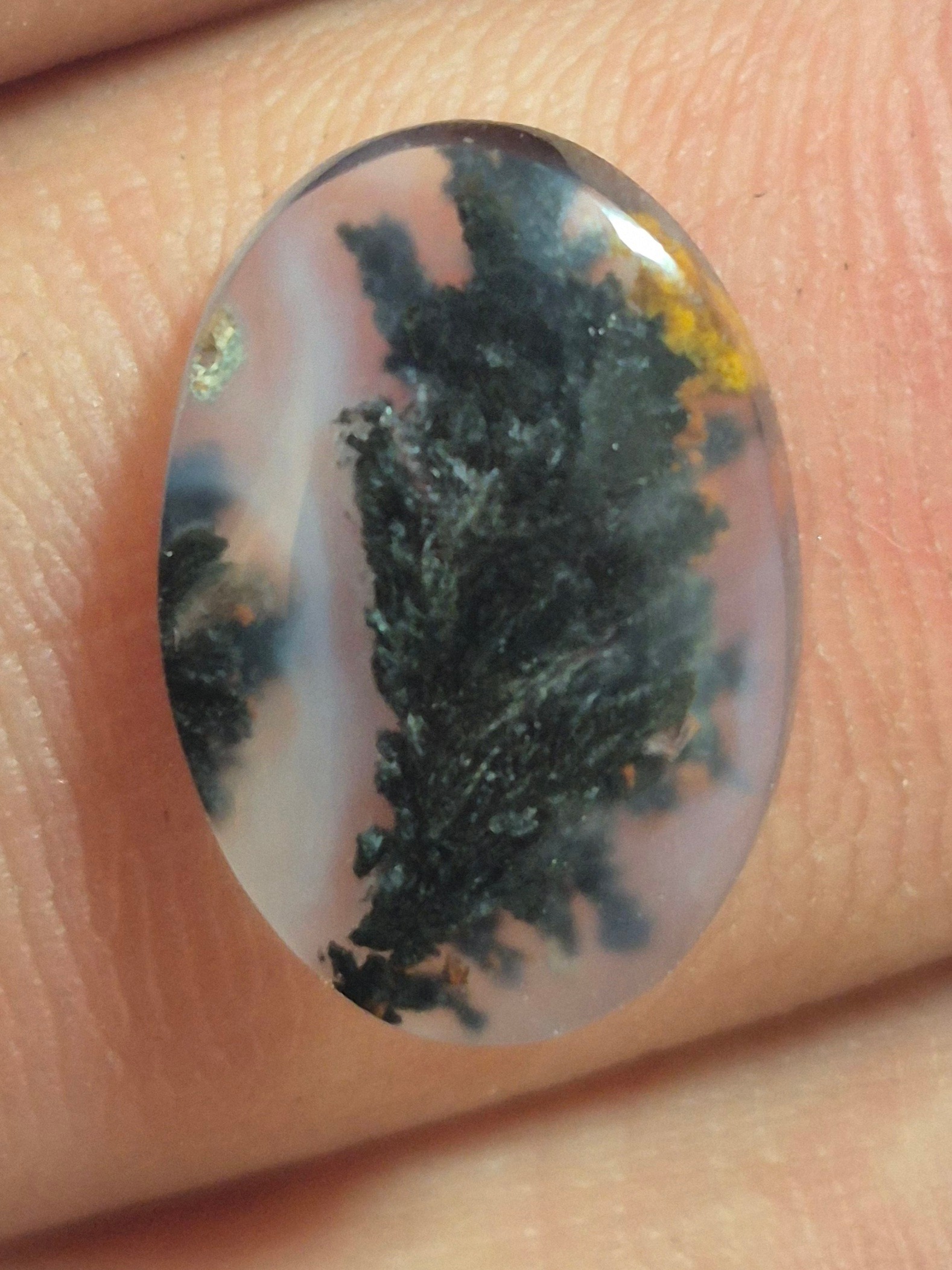 نگین عقیق شجر مشکی ، سایز انگشتر 14×9 میلیمتر