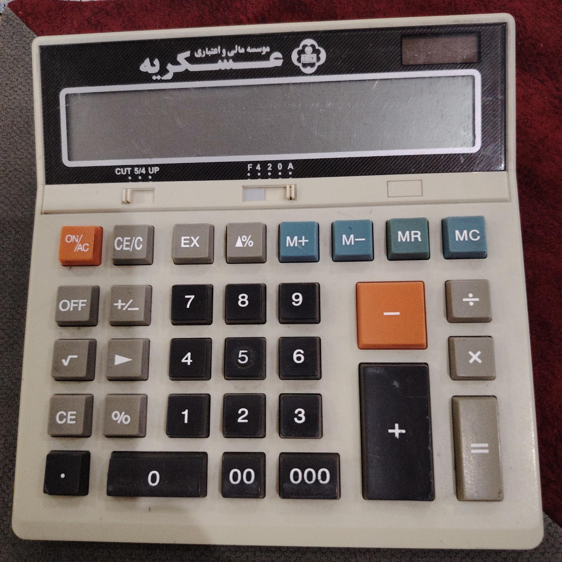 ماشین حساب اصلی سفارشی تعاونی عسکریه با کیفیت عالی قیمت نو این ماشین حساب بیش از 13 میلیون تومان است و دست دوم آن قیمتش بالای 4میلیون تومان است اما قیمت عالی زدم برای اینکه زودتر فروش بره تعداد زیاد دارم