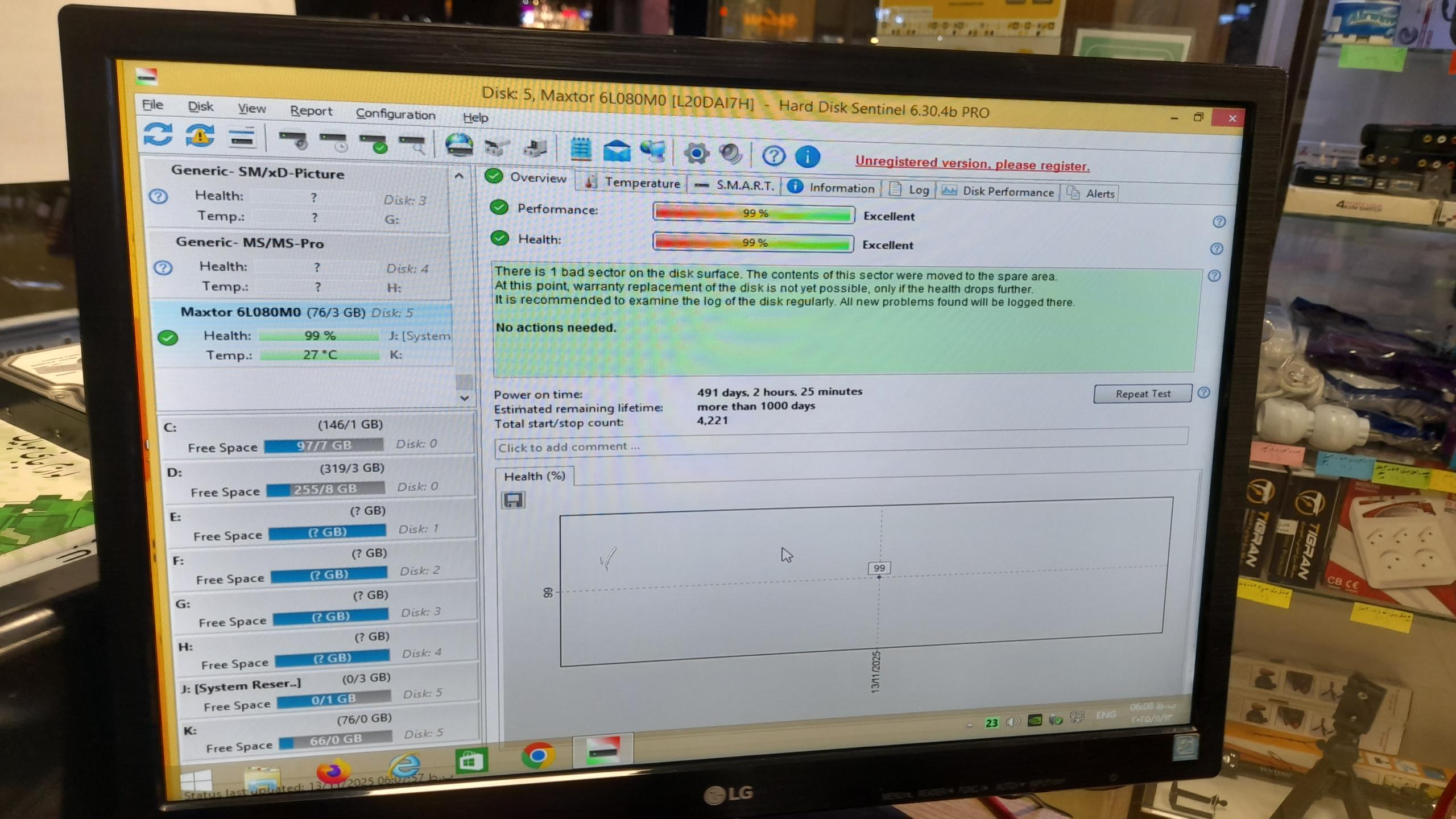 هارد 80 گیگ مکستور sata سلامت 99 درصد