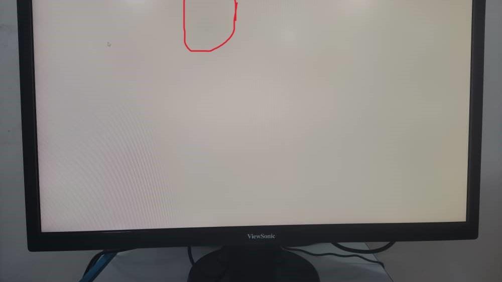 مانیتور دارای حاله جزی کم رنگی هست که خیلی باید دقت کرد تا دیدیده بشه در عکس از صحفه سفیدش گذاشته شده و با خط قرمز نشانه گذاری شده