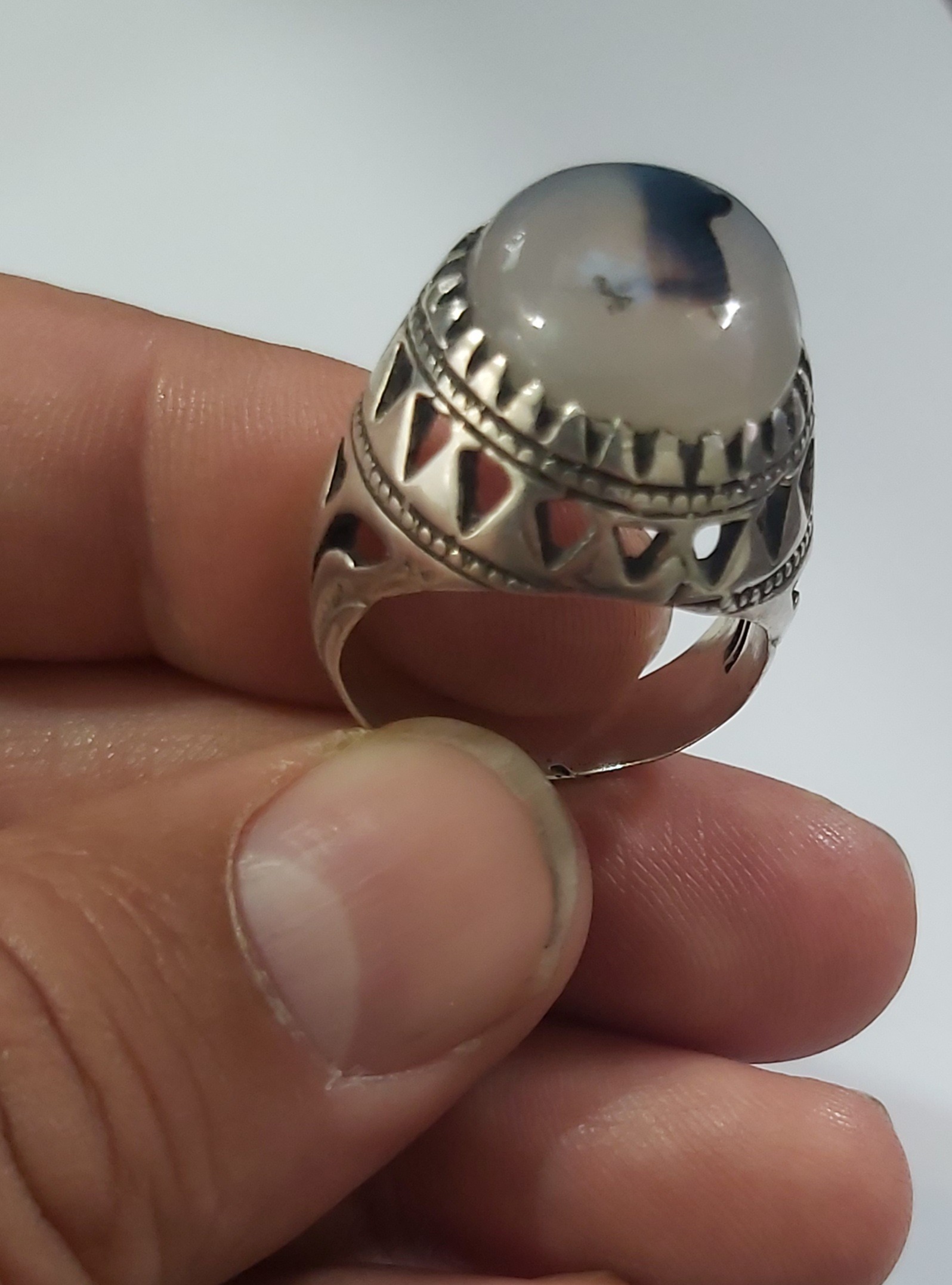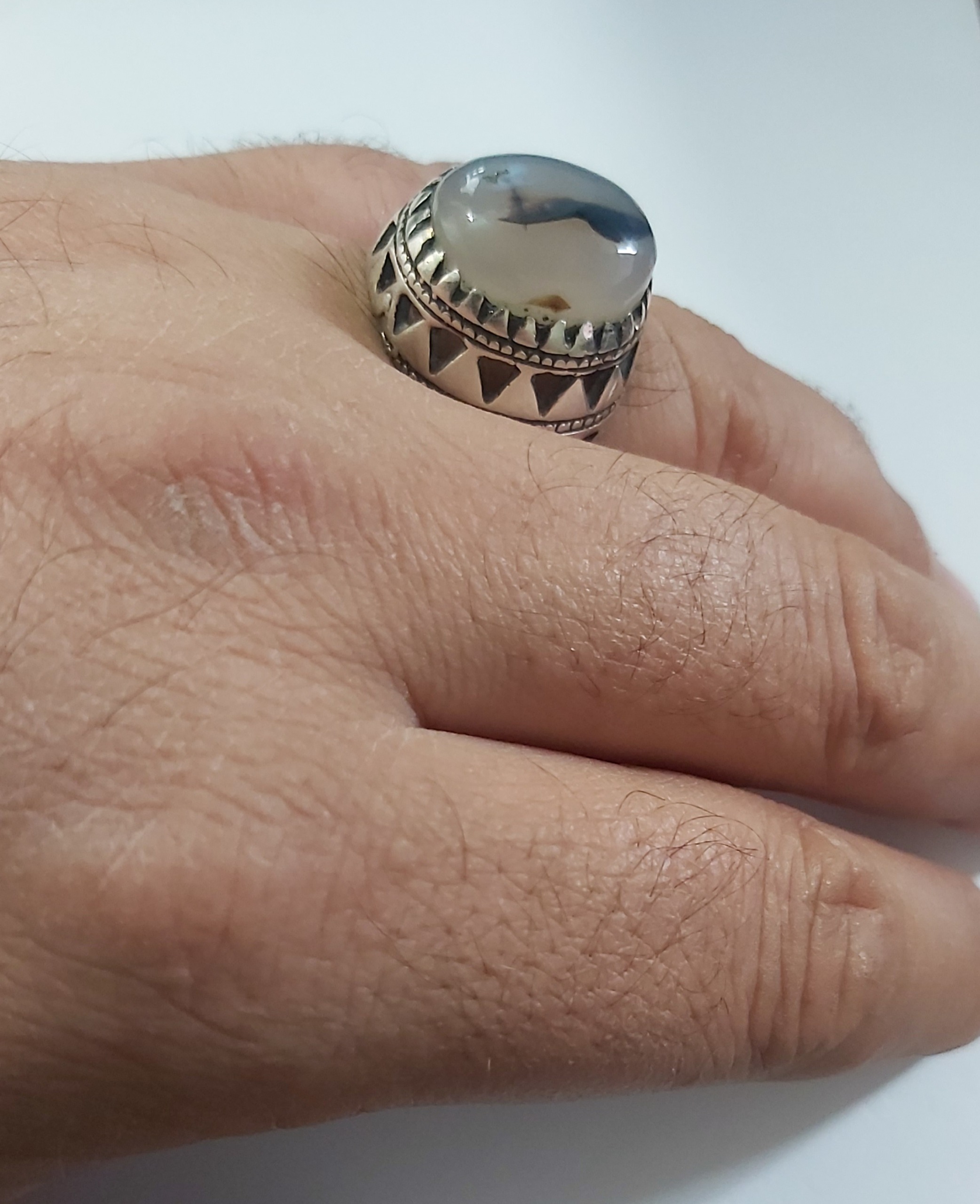 : انگشتر نقره 925 دستساز با سنگ شجر اصل معدنی ؛ وزنشم 10گرم و 78صوته ؛ سایزشم اگه اشتباه نکم 63 با 64 هست ؛ که حداقل نباشه برا 40 سال پیشه ؛ واقعا زیبا و خوش دسته انشالا قسمت هرکی که شد خیر همراهش باشه... آمین باتشکر.