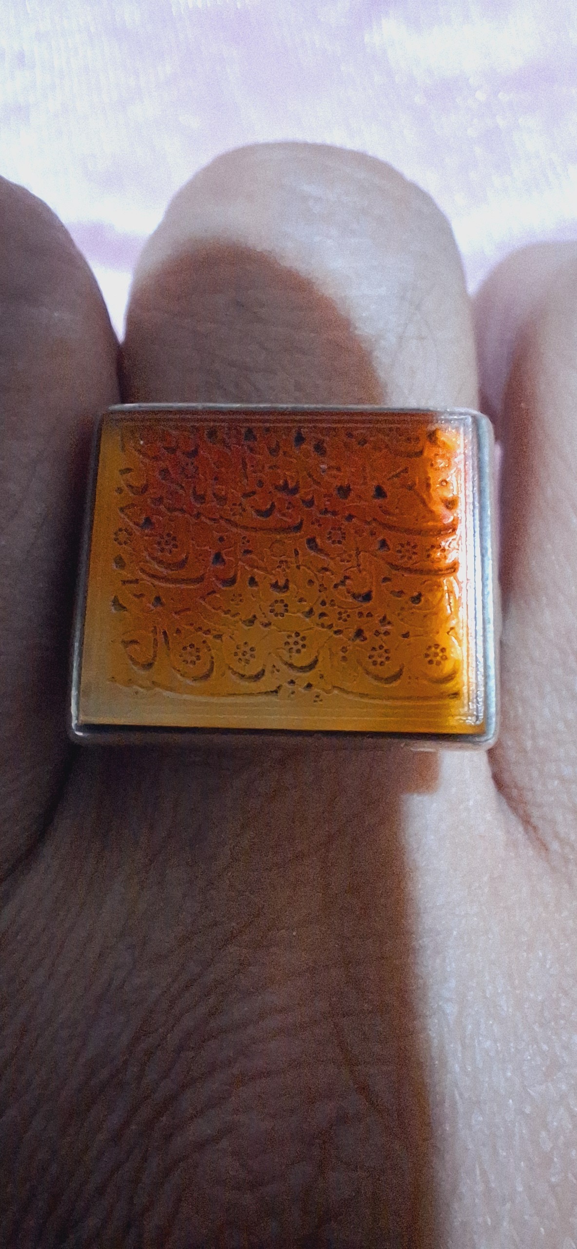 انگشتر دست ساز نقره نگین عقیق خطی شعر بینظیر قلم زنی دست واقعا کاری بینظیر