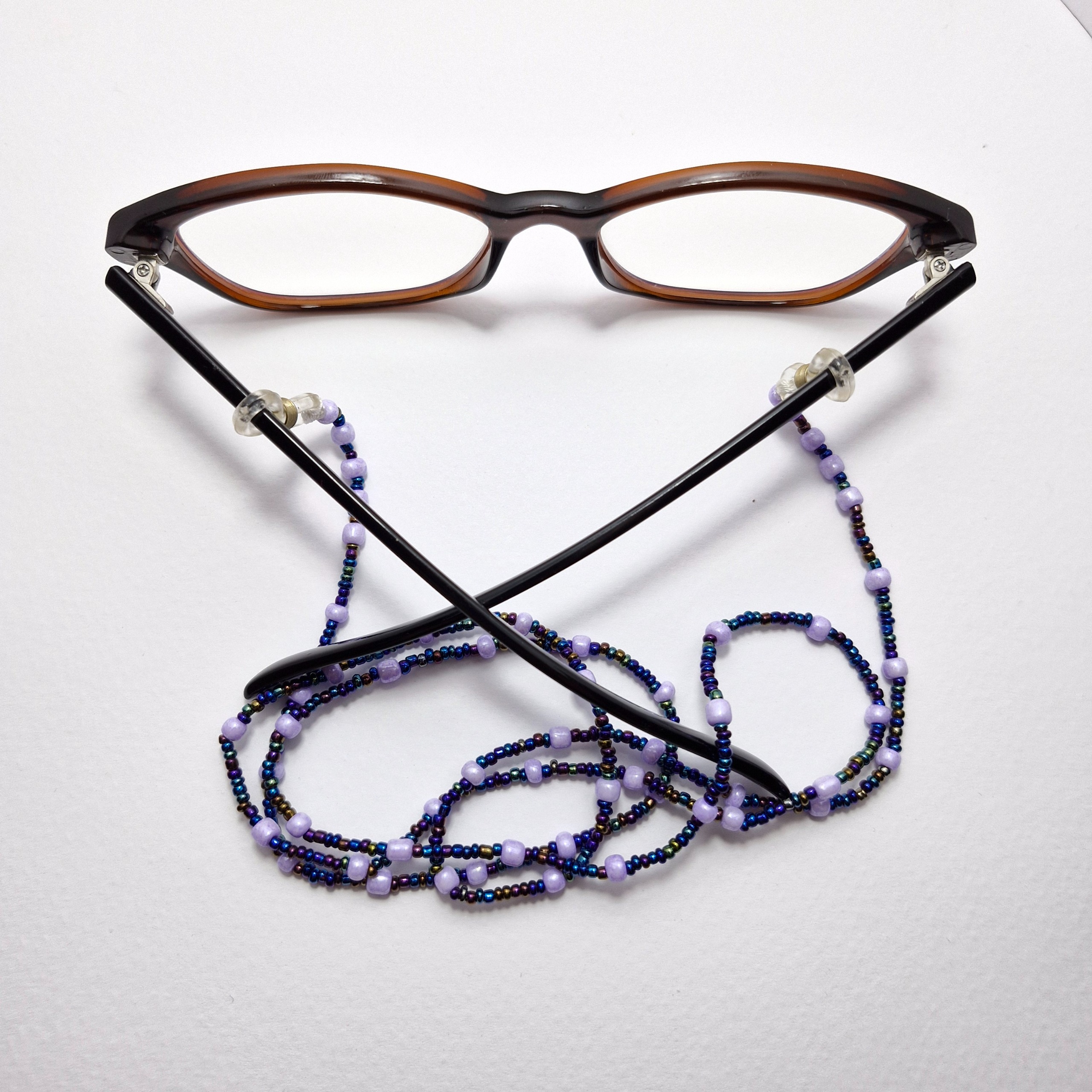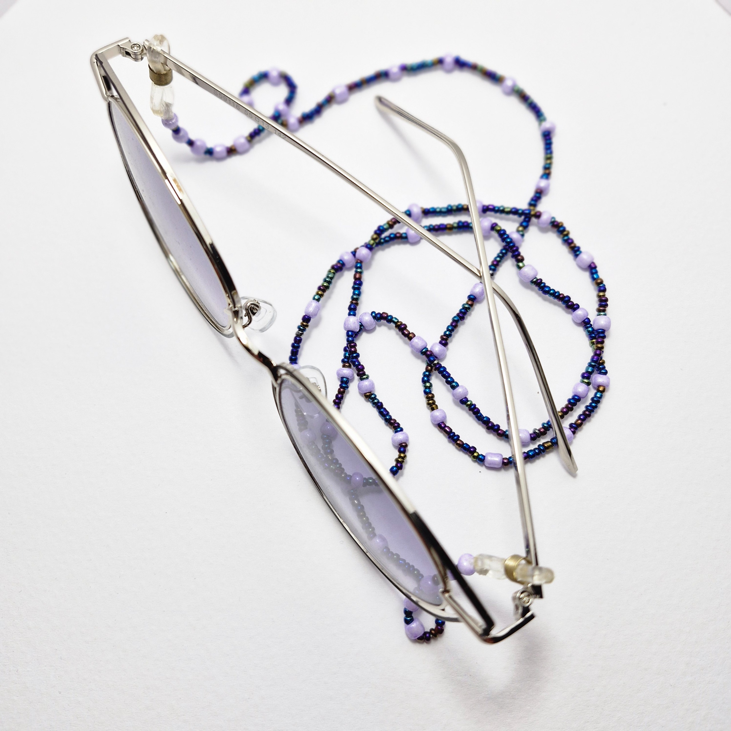 بند عینک ، منجوق سرمه ای هفت رنگ و یاسی
