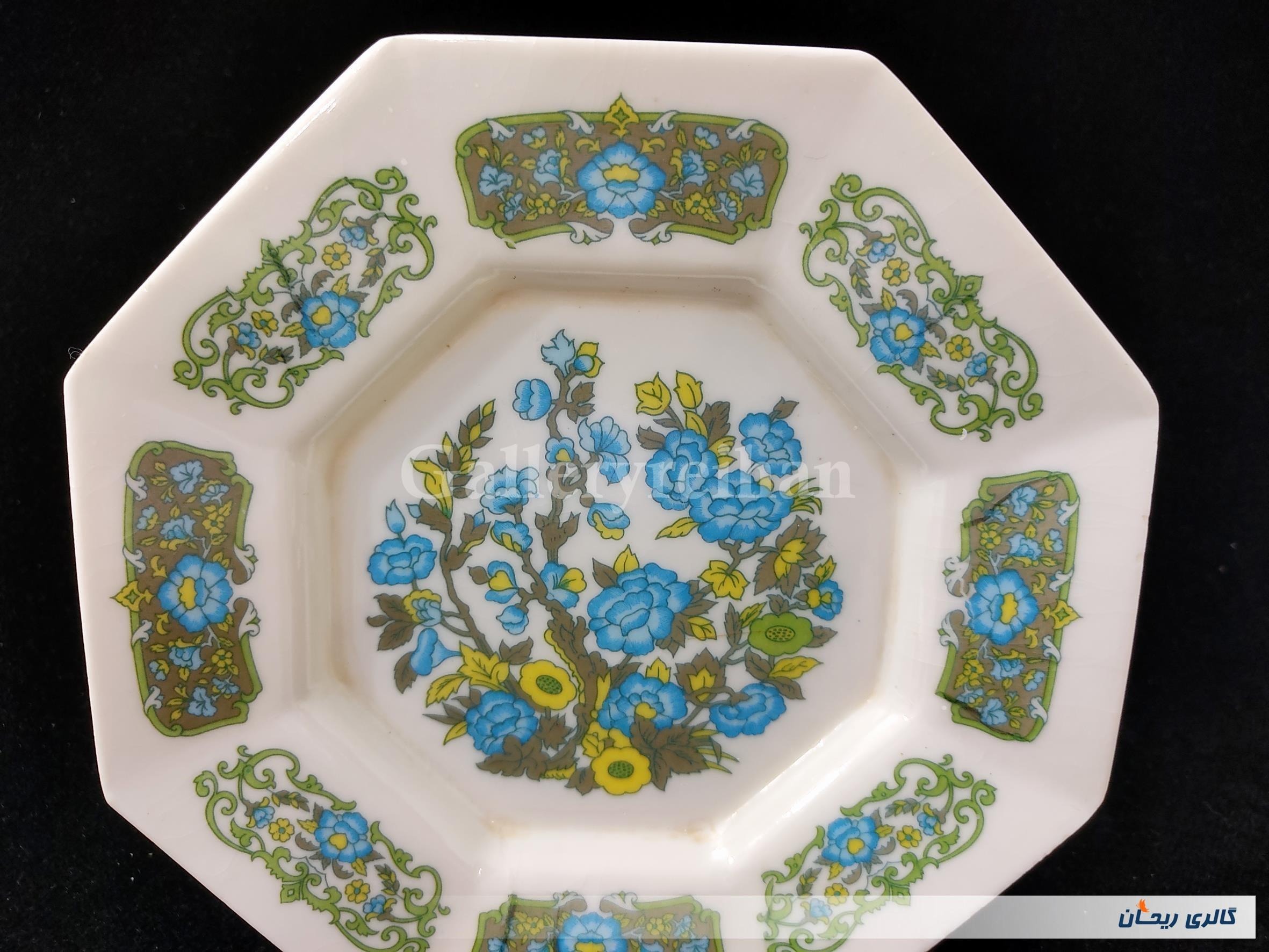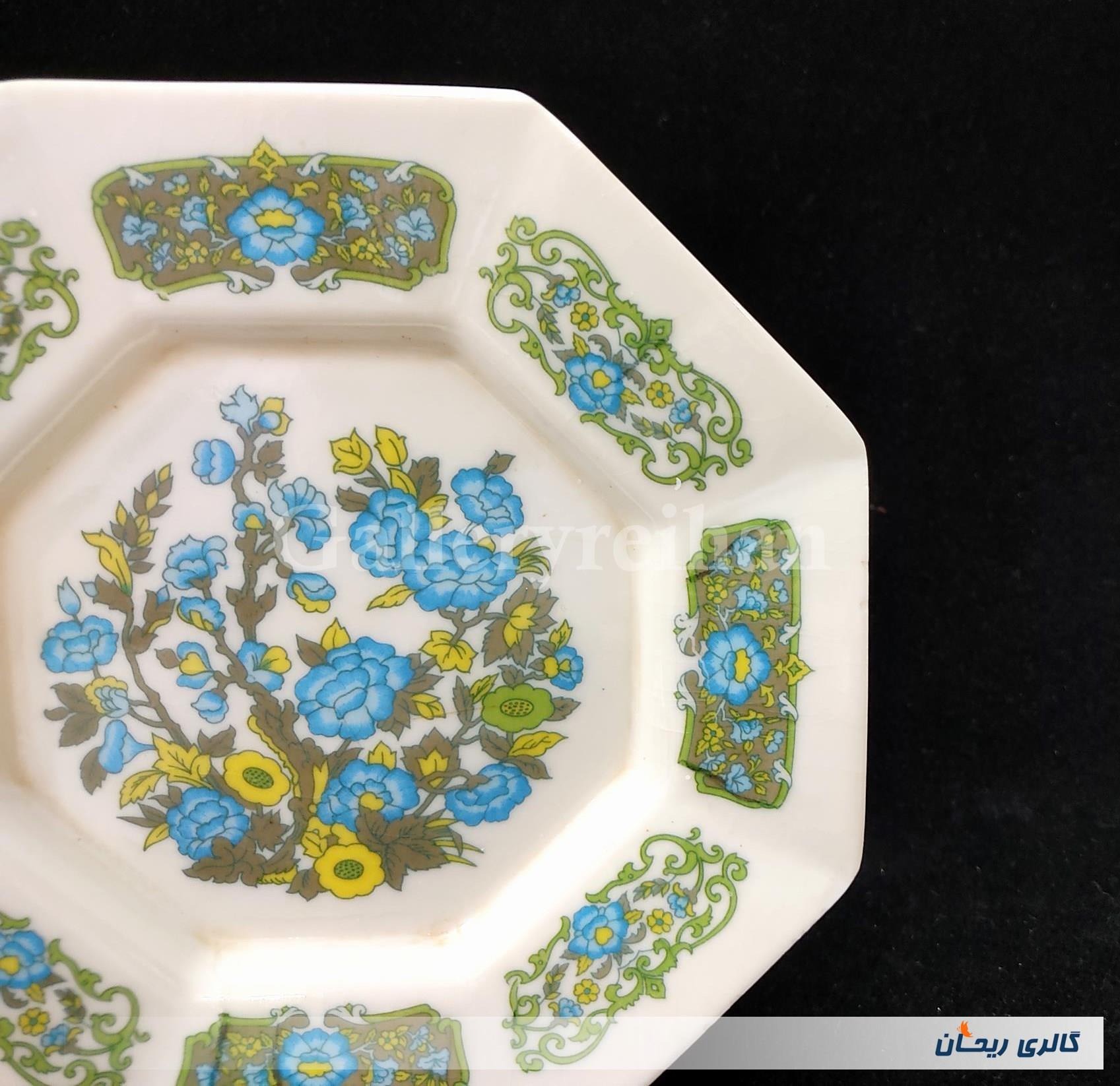 دیوارکوب ملامین قدیمی طرح گل آبی 8 ضلعی (کد47837)