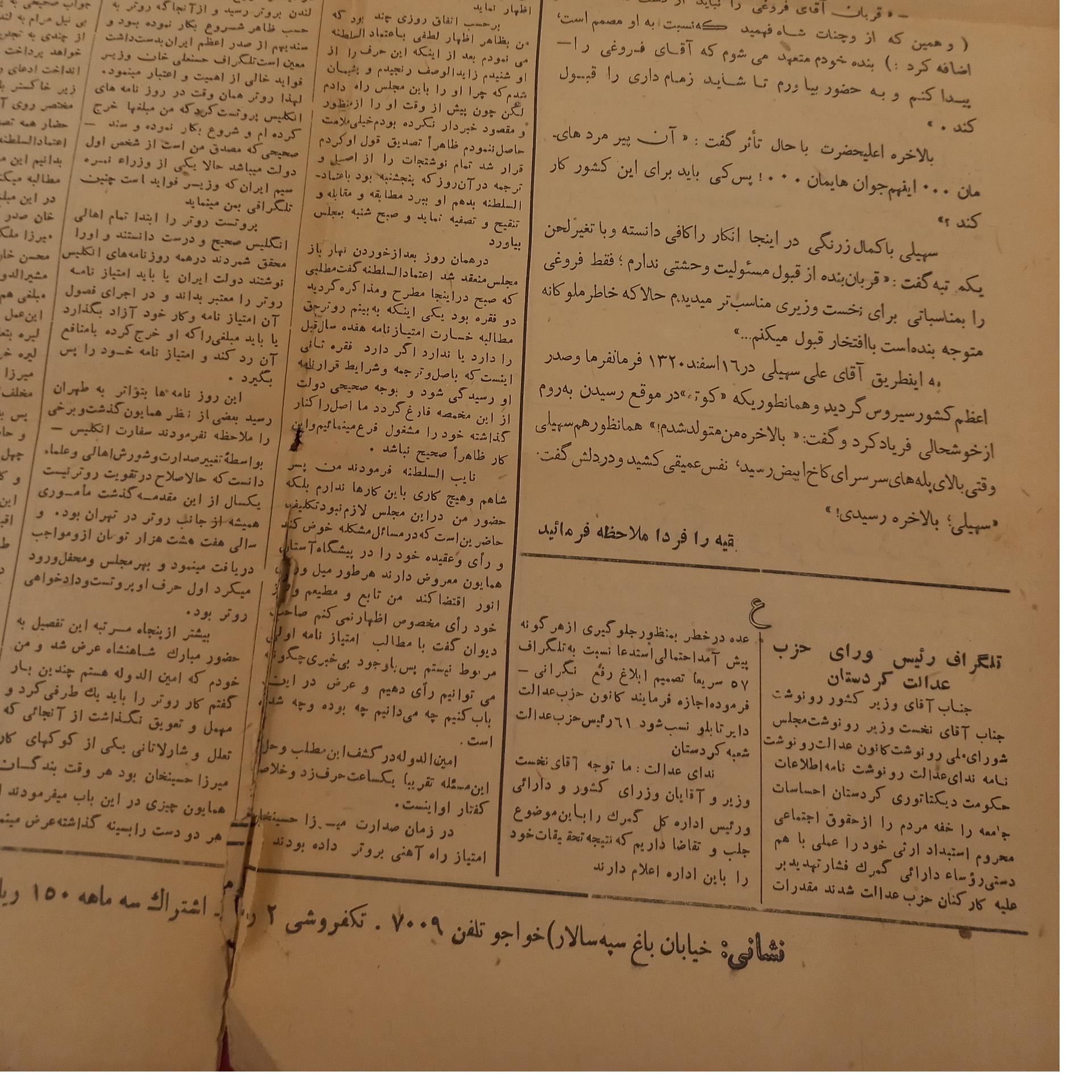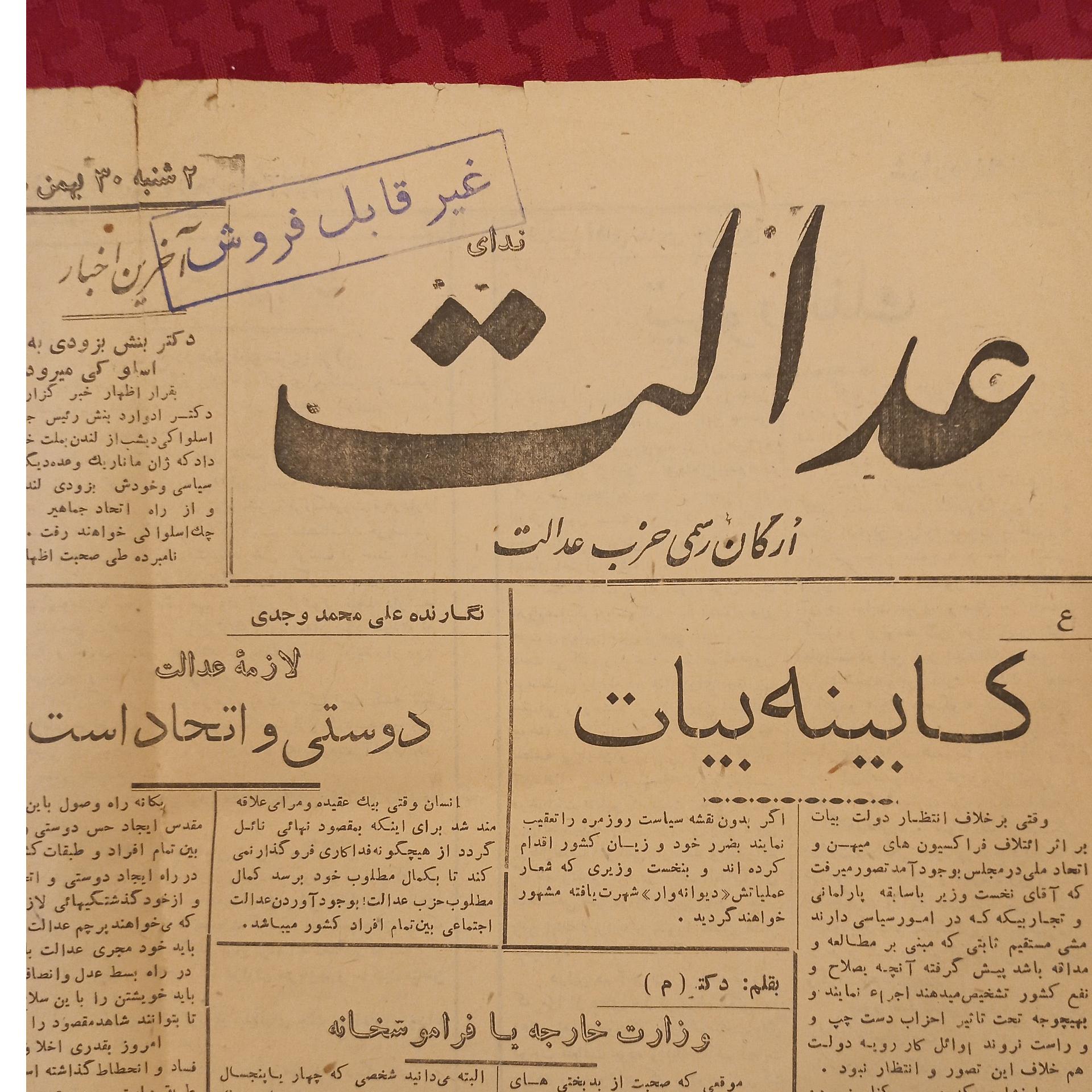 روزنامه عدالت چاپ 1323