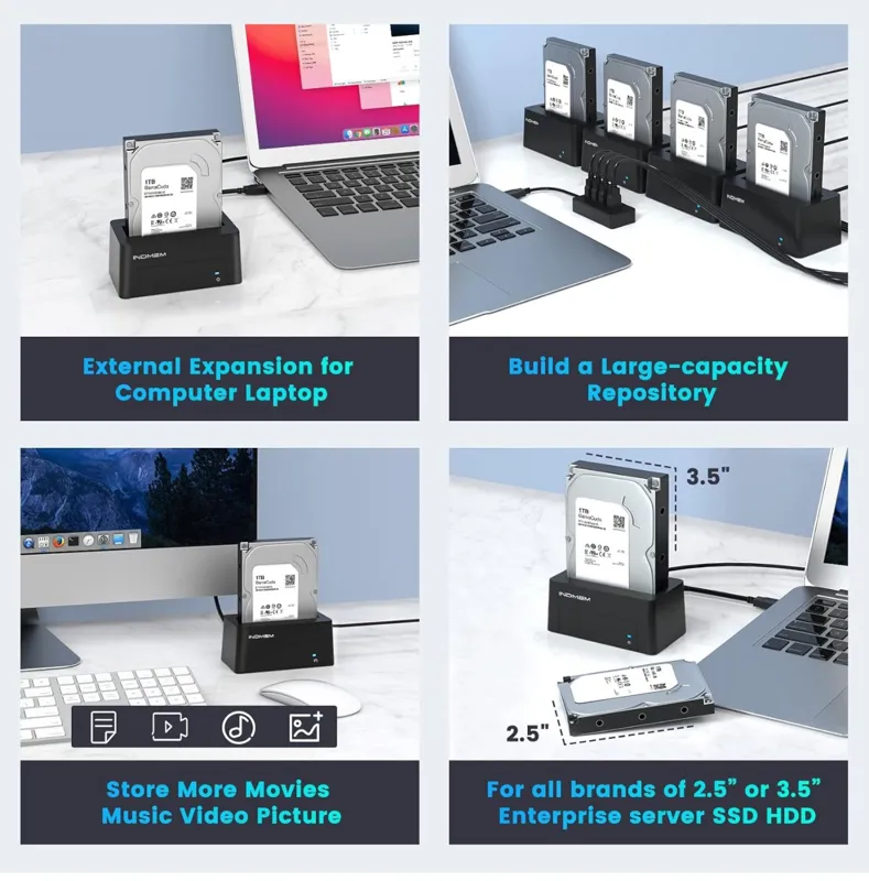 [محفظه درایو SAS] - محفظه SAS با طراحی پایه برای اینکه هارد دیسک SSD 2.5 اینچی/3.5 اینچی به راحتی در داک قرار گیرد و به خوبی ثابت شود تا از آسیب به هارد دیسک جلوگیری شود. بهترین شریک برای مهندسان فناوری اطلاعات، مهندسان نرمافزار، کپی دادههای سرور