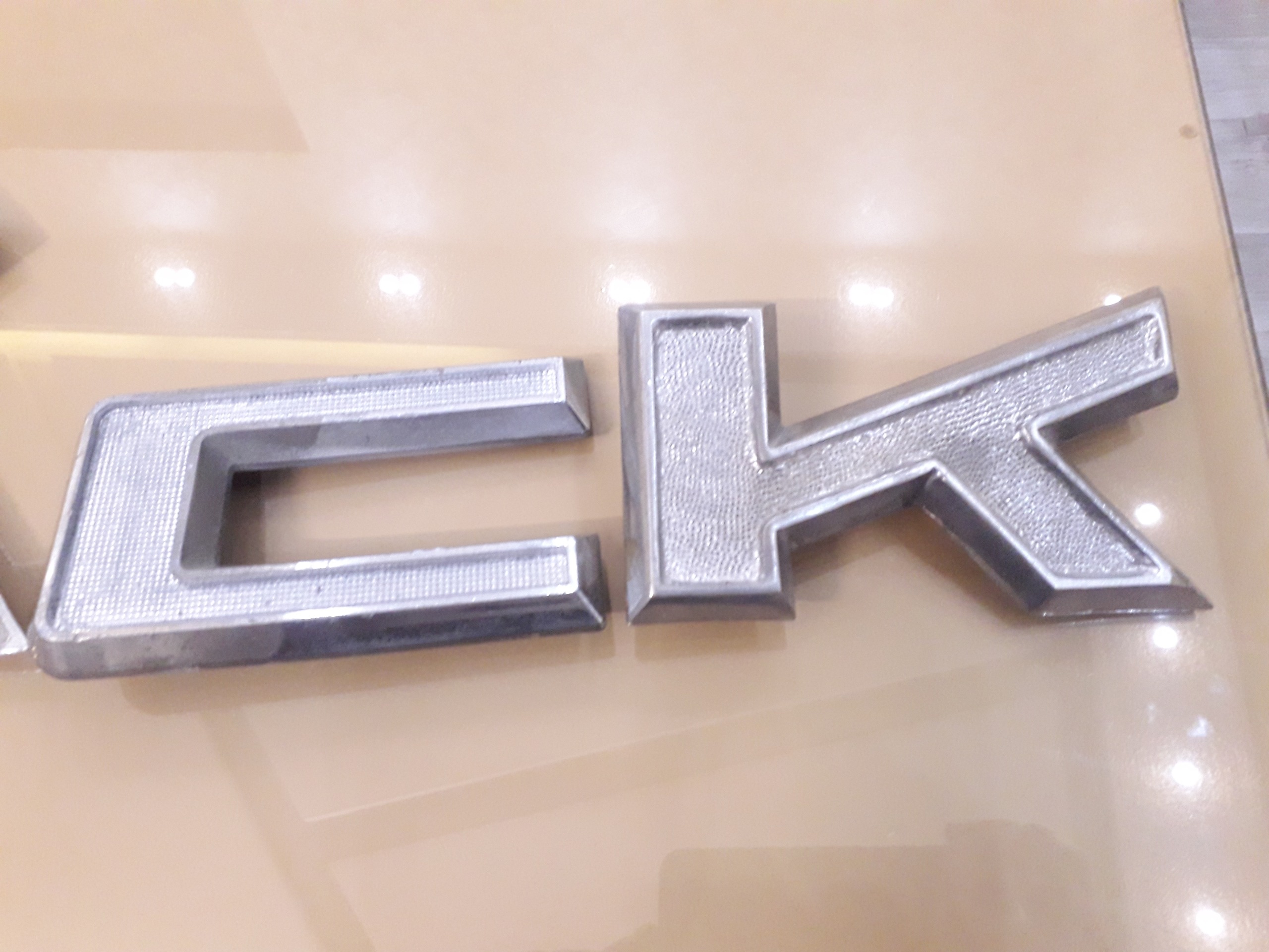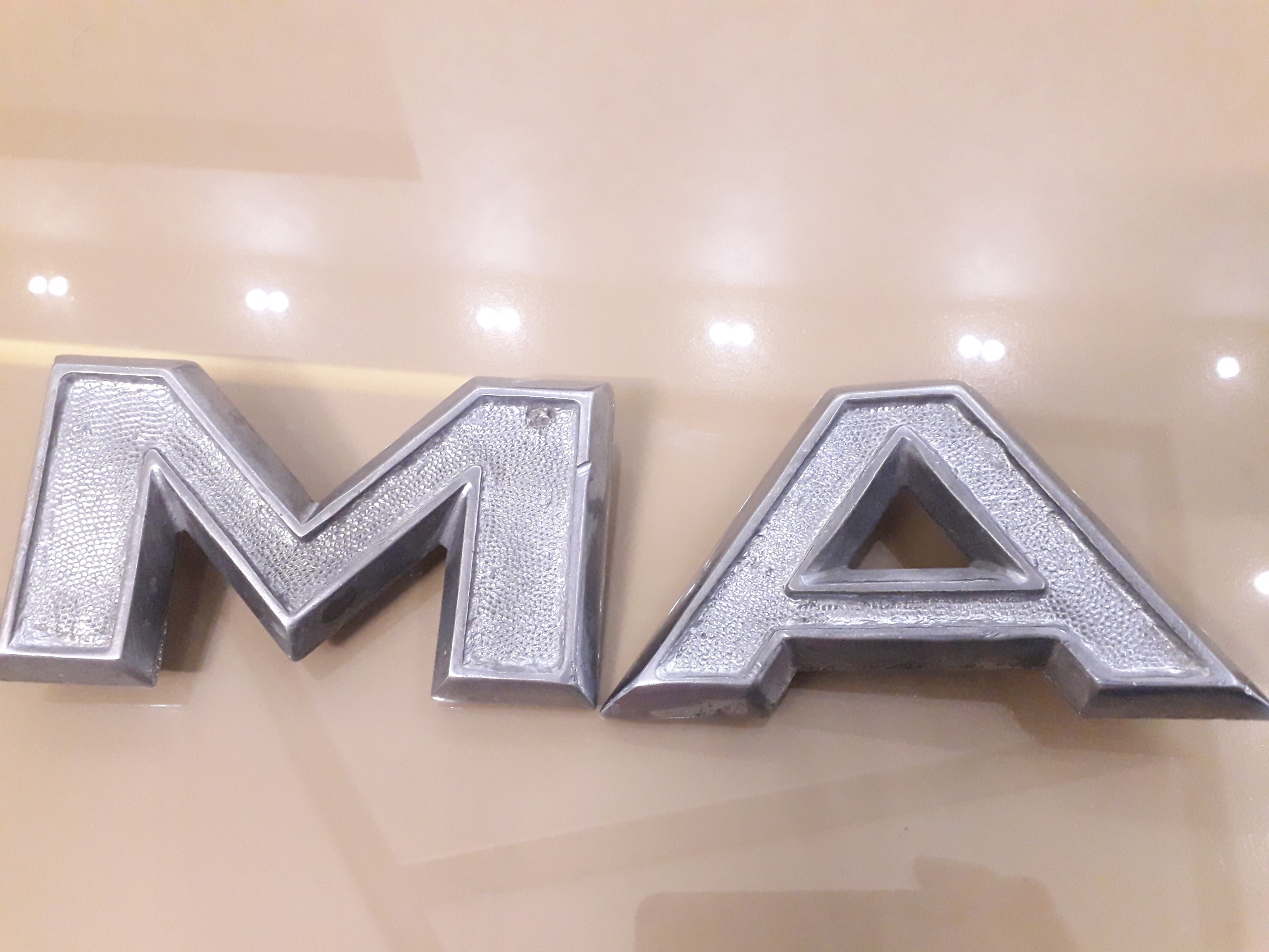 آرم برنجی ماشین سنگین ماک.جنس اصلی با آرم ماک بصورت برجسته در پشت قطعات موجود هست. حرف C جنسش فلزی نیست و از جنس ABS هست ولی از نظر ظاهری تفاوت زیادی نداره. سه حرف دیگه برنجی با آبکاری کروم هست. وزن سنگین و بسیار زیبا