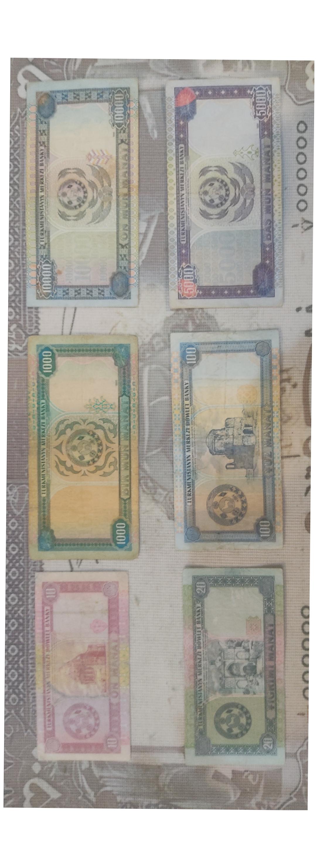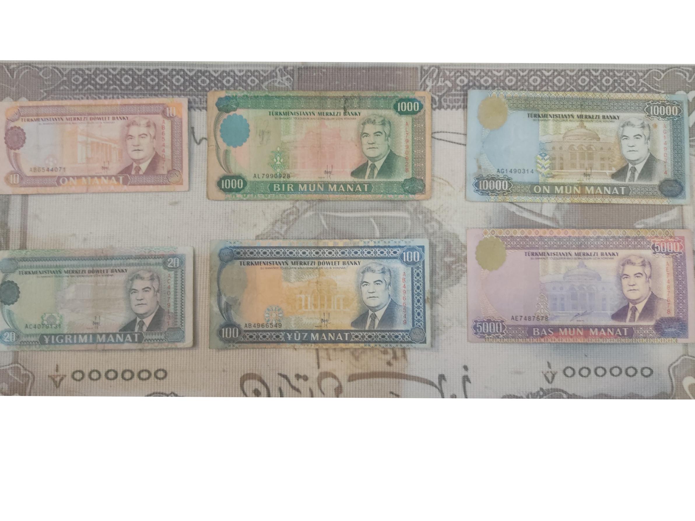 ست شامل شش برگ 10 و20 و 100 و1000 و5000 و ده هزار منات کشور ترکمنستان دست دوم با کیفیت خوب
