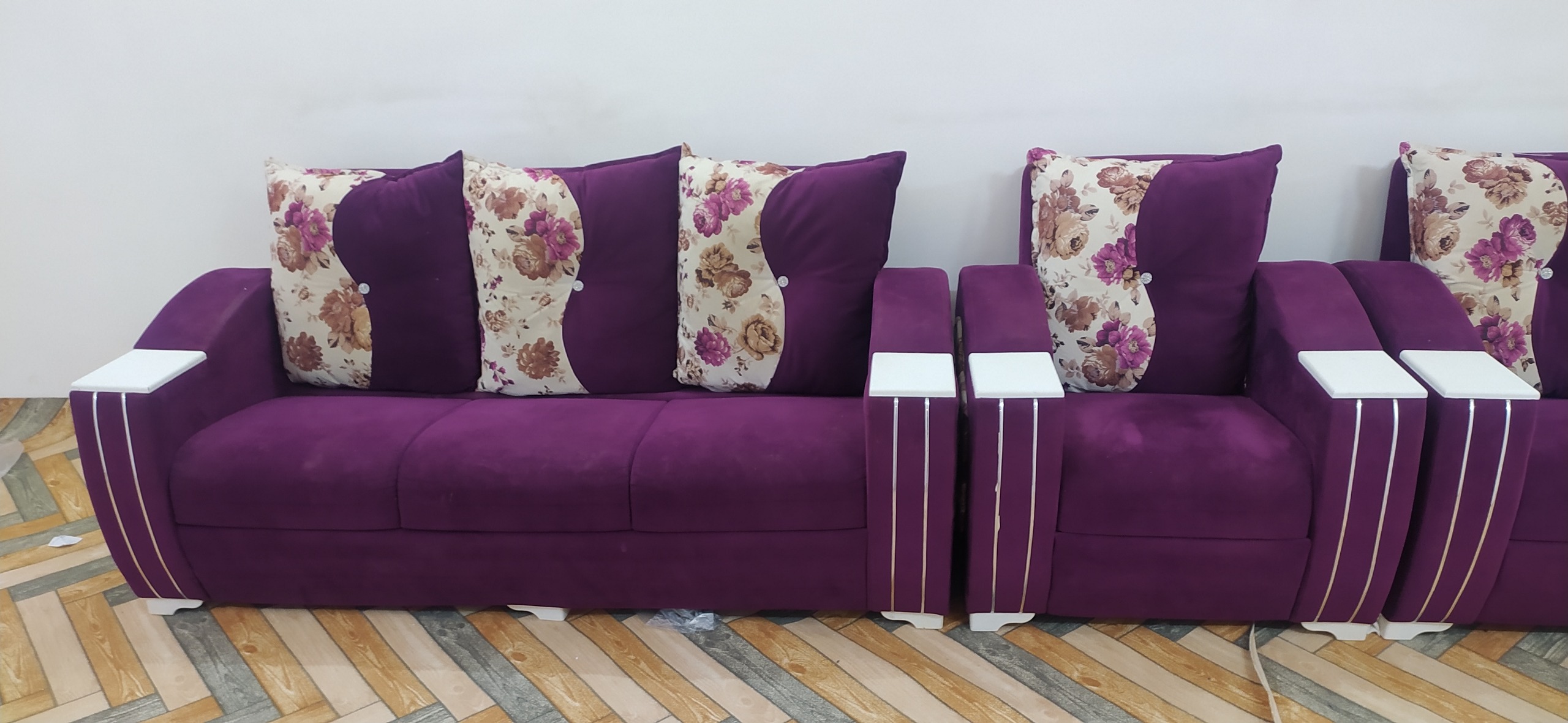 مبل هفت نفره سالم و تمیز عسلی سر خود پارچه مخمل