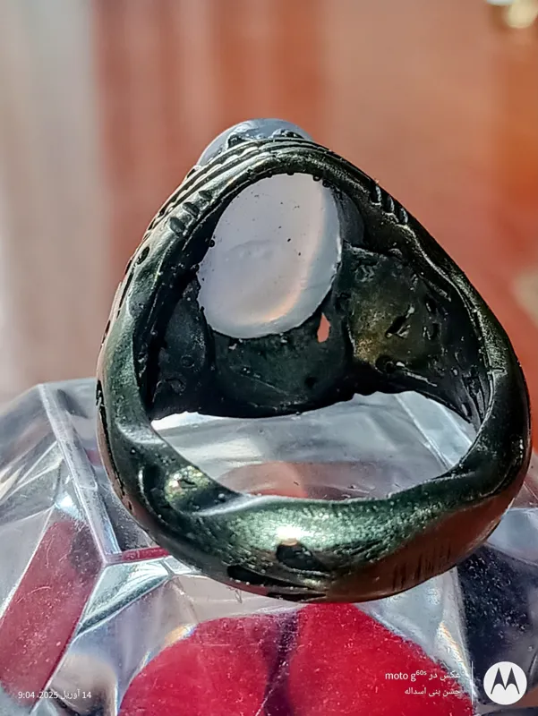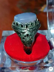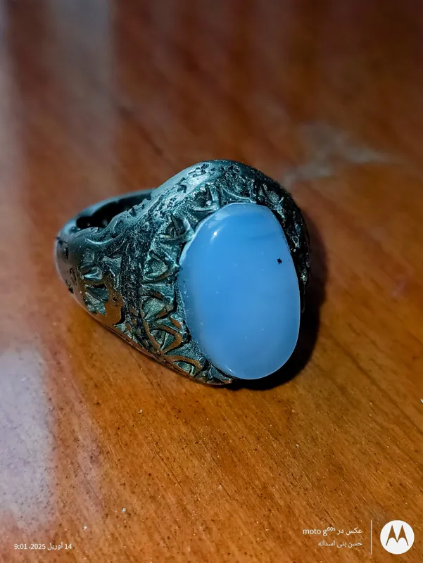 انگشتر رکاب سیلندری با نگین عقیق کبود خراسان بسیار زیبا و خوش رنگ سایز 63 بوزن 15/9 گرم