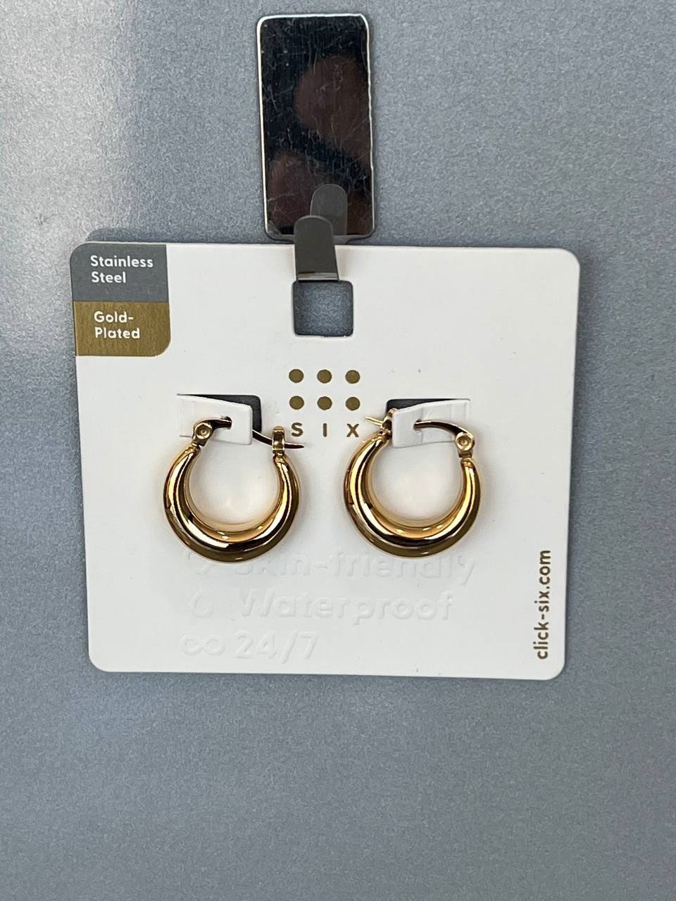 این گوشواره از استیل ضد زنگ (Stainless Steel) از برند SIX با کیفیت بالا ساخته شده و با روکش طلا پوشیده شده است تا درخشش و ظرافت آن، زیبایی خاصی به استایل شما ببخشد. طراحی ساده اما براق این مدل، آن را برای تمامی استایلها از کژوال گرفته تا رسمی مناسب کرده است. همچنین، به لطف استیل ضد زنگ، هیچ نگرانی بابت تغییر رنگ یا زنگزدگی وجود ندارد.