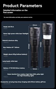 ( قیمت تک فروشی4 تا 5/500 )قوی ترین چراغ قوه موجود در بازار که کاربردهای مختلفی دارد از جمله مشعل برقی :شما میتوانید به عنوان چراغ یا مشعل استفاده کنید همچنین به عنوان یک پاور بانک نیز این چراغ قابل استفاده هست. کاملا ضد آب .روشن کردن آتش در مواقع بحرانی از لنز موجود در جعبه استفاده کنید . دارای 4 باتری لیتیومی 181350 .برد نور بسیار بالا .دارای 4 لنز با کاربرد های مختلف. دارای 2 پورت type c و usb _a .نشانگر میزان شارژ .چراغ شرایط اضطراری و sos .