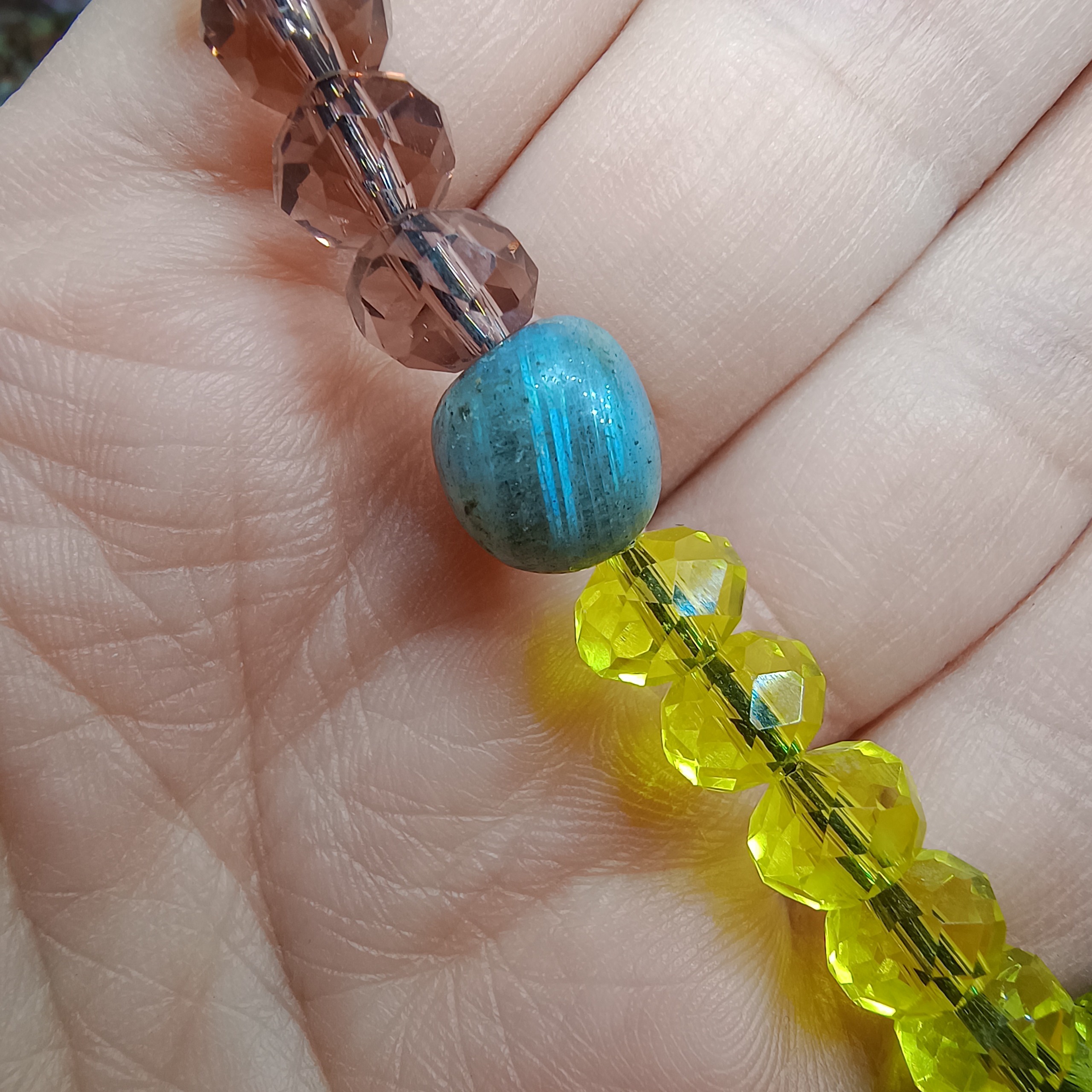 اصالت سنگ: لابرادوریت صد در صد طبیعی و معدنی، مهره های رنگی کاملا صنعتی