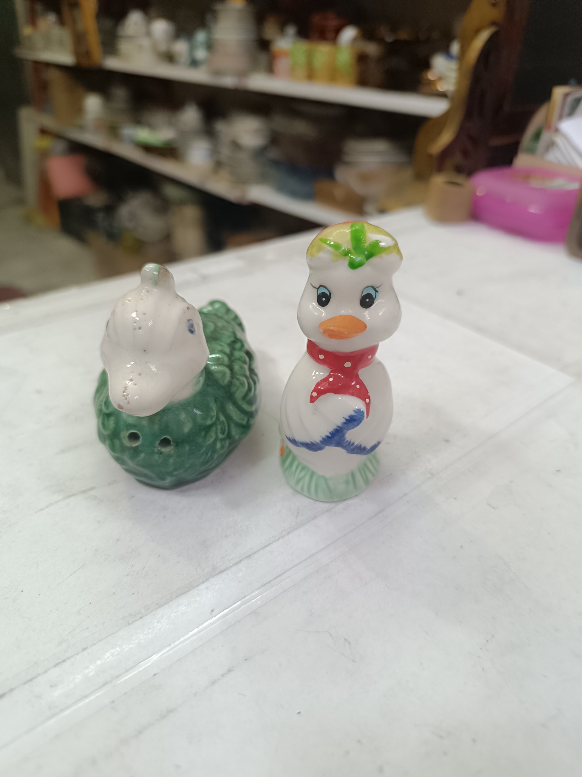 دو عدد نمکدان چینی تک ، قدیمی ، هر دو با هم بفروش می رسد.