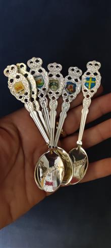 6 عدد قاشق چایخوری پلاکدار اروپایی قدیمی آنتیک و کلکسیونی