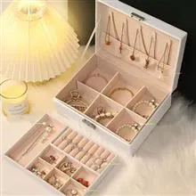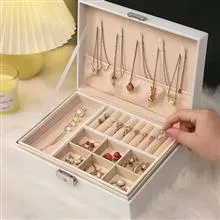 جعبه جواهرات دو طبقه راهکاری ایدهآل برای نگهداری و سازماندهی جواهرات شماست. این محصول با طراحی خاص و ظرفیت دوگانه، انتخابی مناسب برای افرادی است که به نظم، زیبایی و محافظت از جواهرات خود اهمیت میدهند.