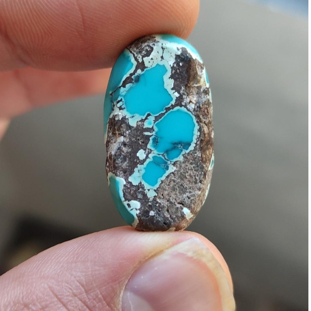 فیروزه درشت نیشابور خوشرنگ برخلاف خیلی از فیروزه های جدید که پشتشونو با یه ماده مثل سیمان میپوشونن این اونجوری نیست و بیشتر سنگ فیروزه خالصه قواره 29در 16میل