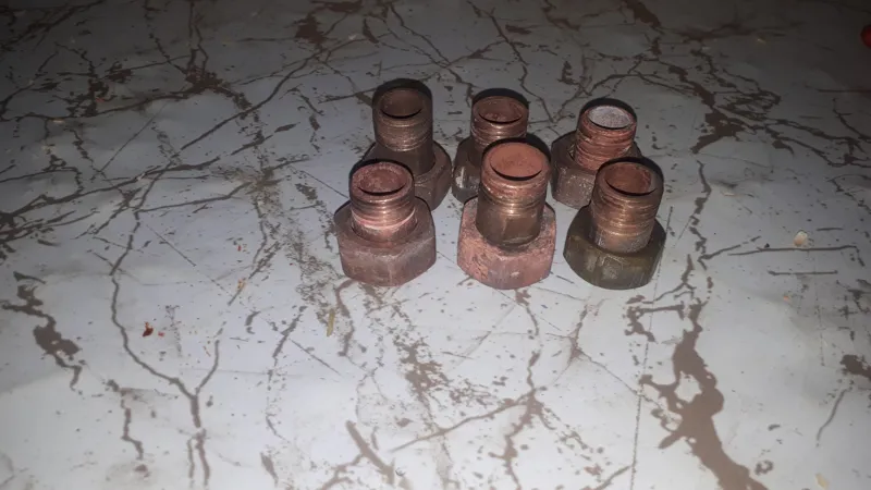 6عدد مهره ماسوره کنتور اب جنس برنجی رزوه سایز1/2،و مهره سایز 3/4 کارکرده سالم و تمیز همگی با هم تقدیم میشه