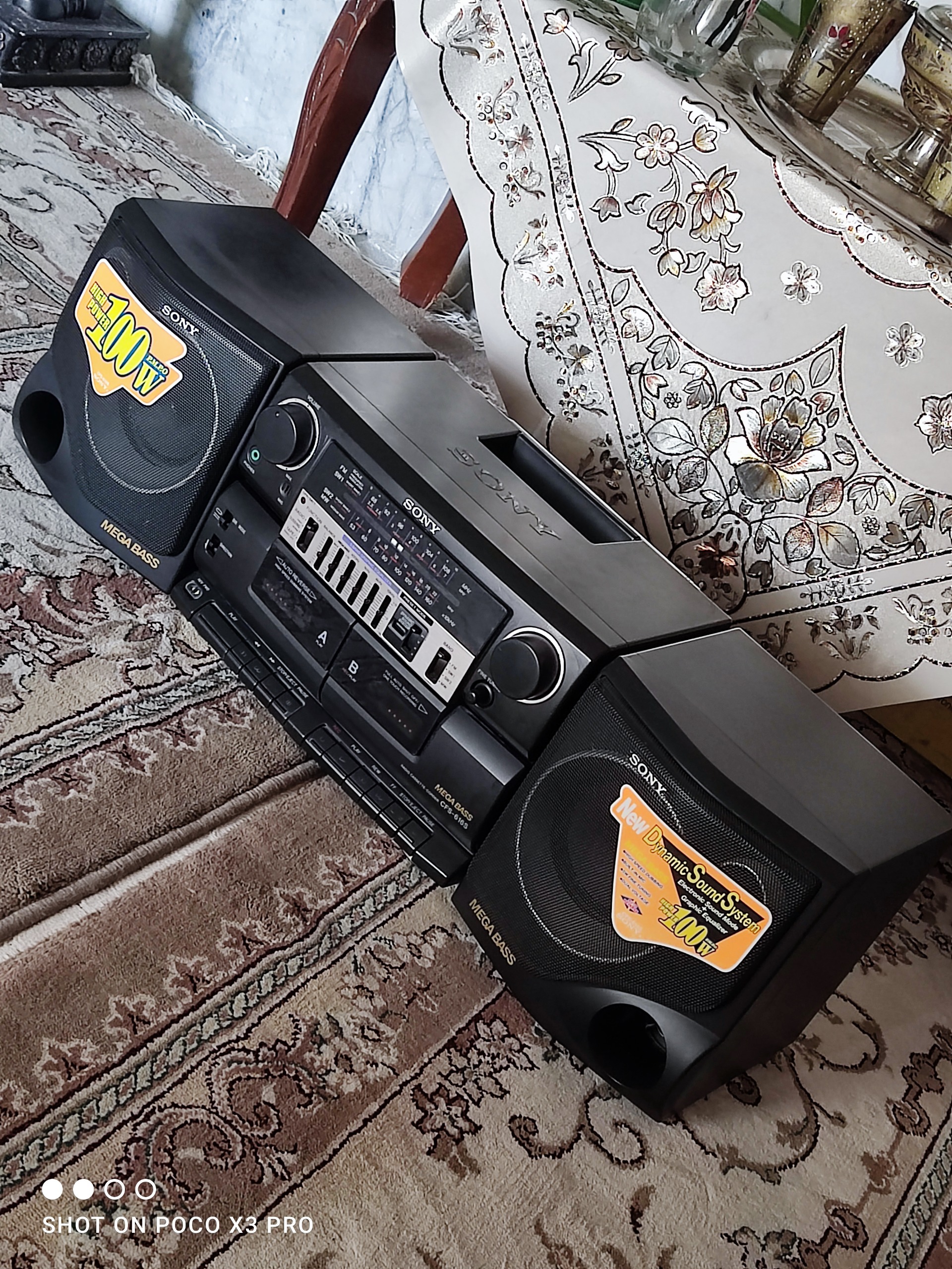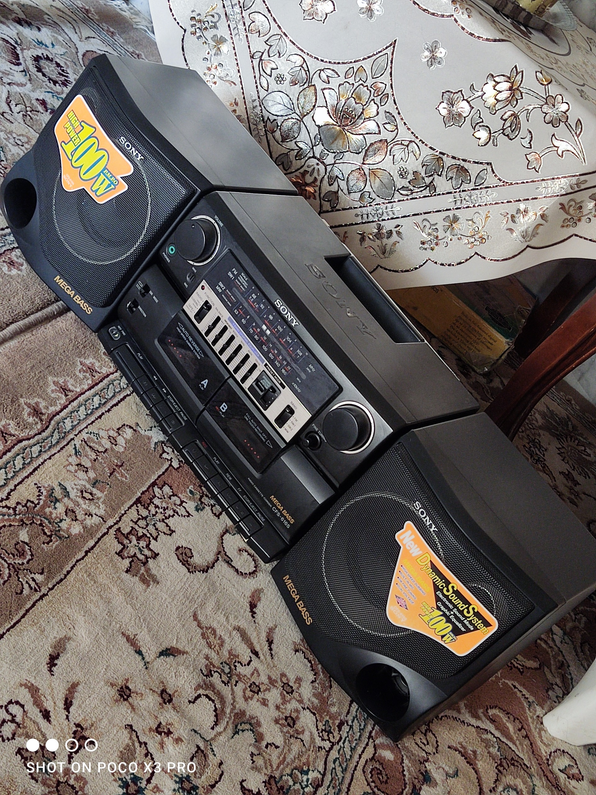 ضبط صوت دو کاست قدیمی ژاپنی آک آک بدون کارتن مطابق تصاویر بسیار سنگین و محکم این ضبط صوت آک آک هست نو نو از روز اول سلفون ازین پلاستیکای نازک شفاف که میکشن روی وسایل ازینا روش کشیده شده بود بعضی جاهاش جای این سلفون روش مونده اینو گفتم که بدونید نه خطی و نه خشی این لکه هایی که بعضی قسمتای ضبط روش دیده میشه جای سلفونه سالم و اک استفاده نشده یه زیرخاکی کمیاب و کلکسیونی