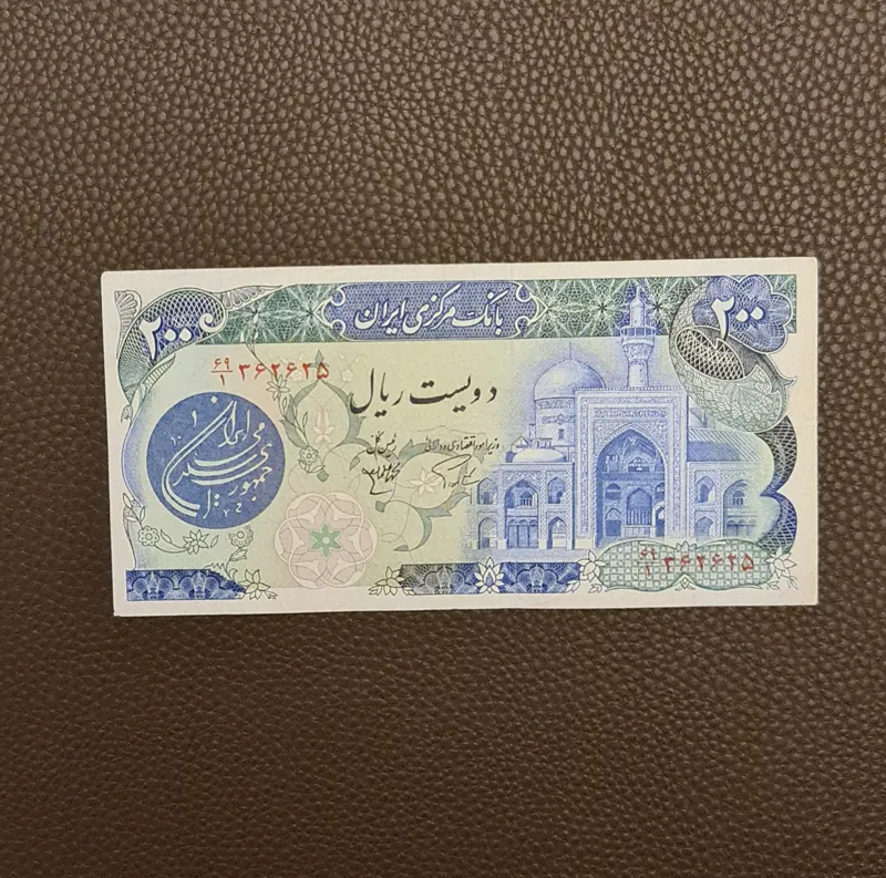 یک تک اسکناس 200 ریال بارگاه امام رضا و آرامگاه ابن سینا با امضا اردلان و مولوی