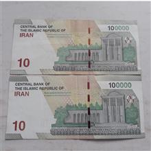 2 برگ اسکناس 100000 ریالی شماره قشنگ