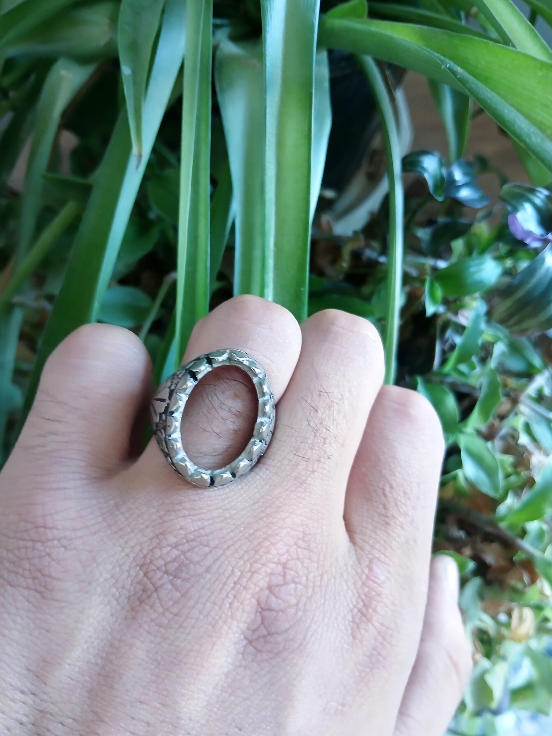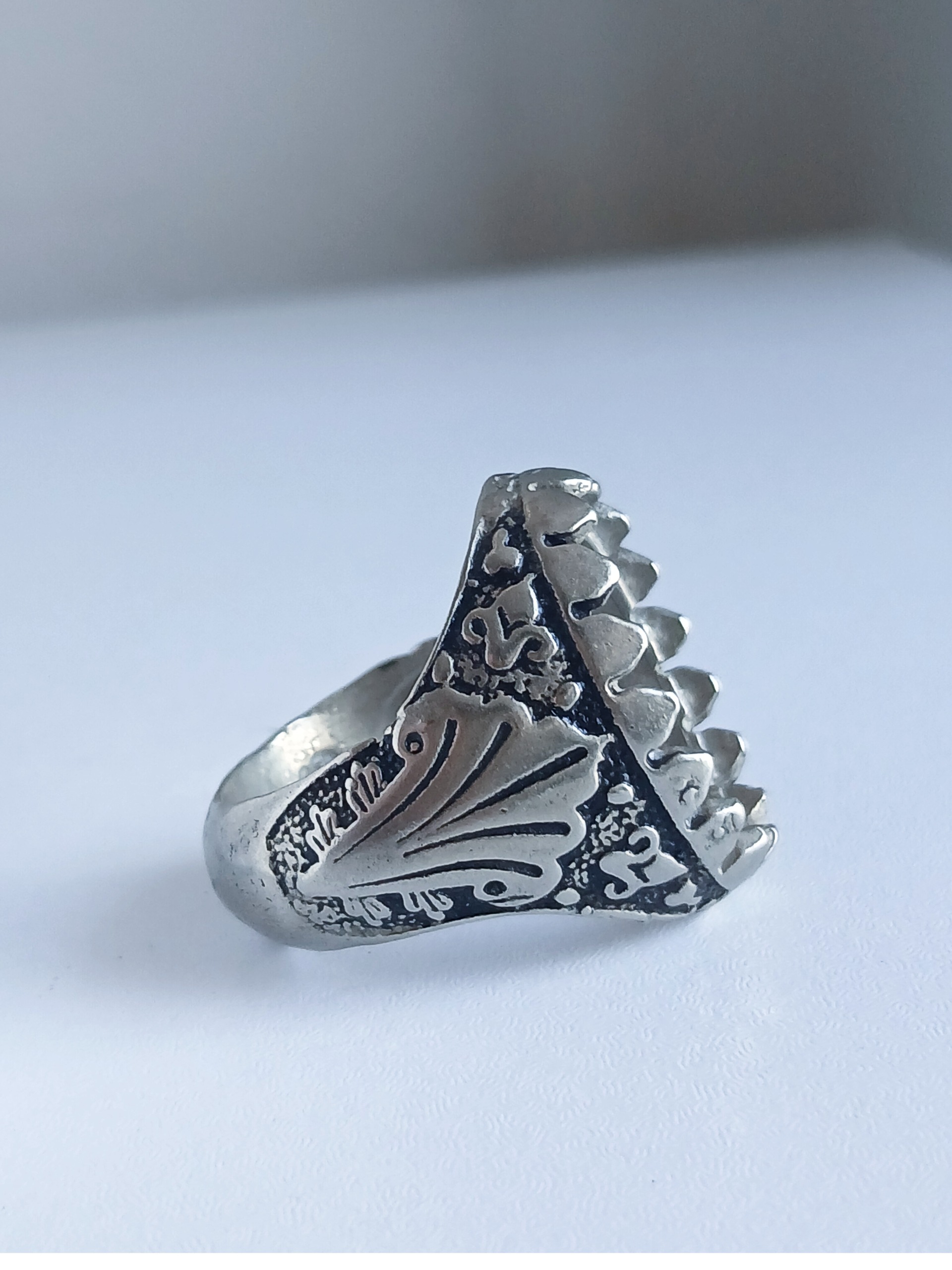 جنس رکاب نقره عیار 74( عیار پایین) آلیاژی ترکیبی رنگ ثابت سایز 61 ابعاد 20 در 14 حک دار