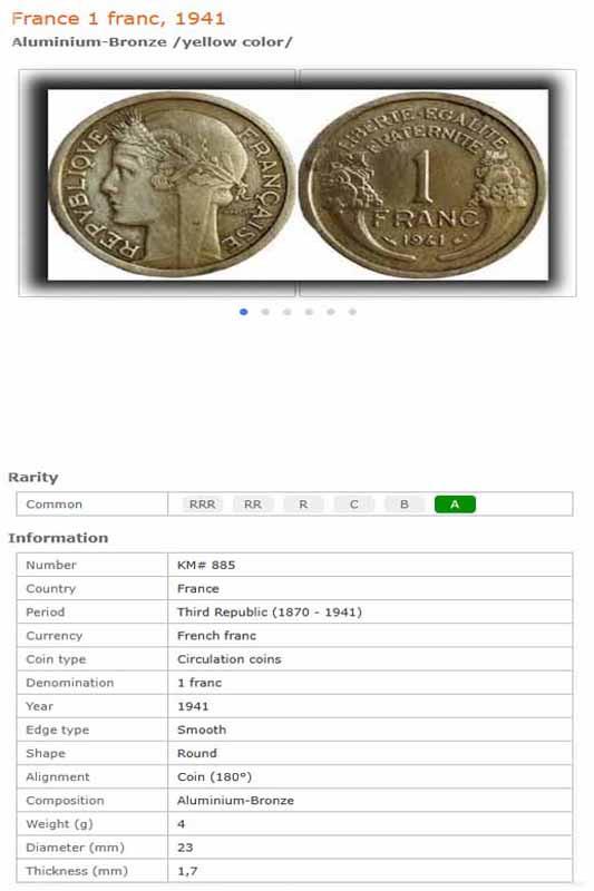 سکه 1 فرانک فرانسه 1941 (نایاب)