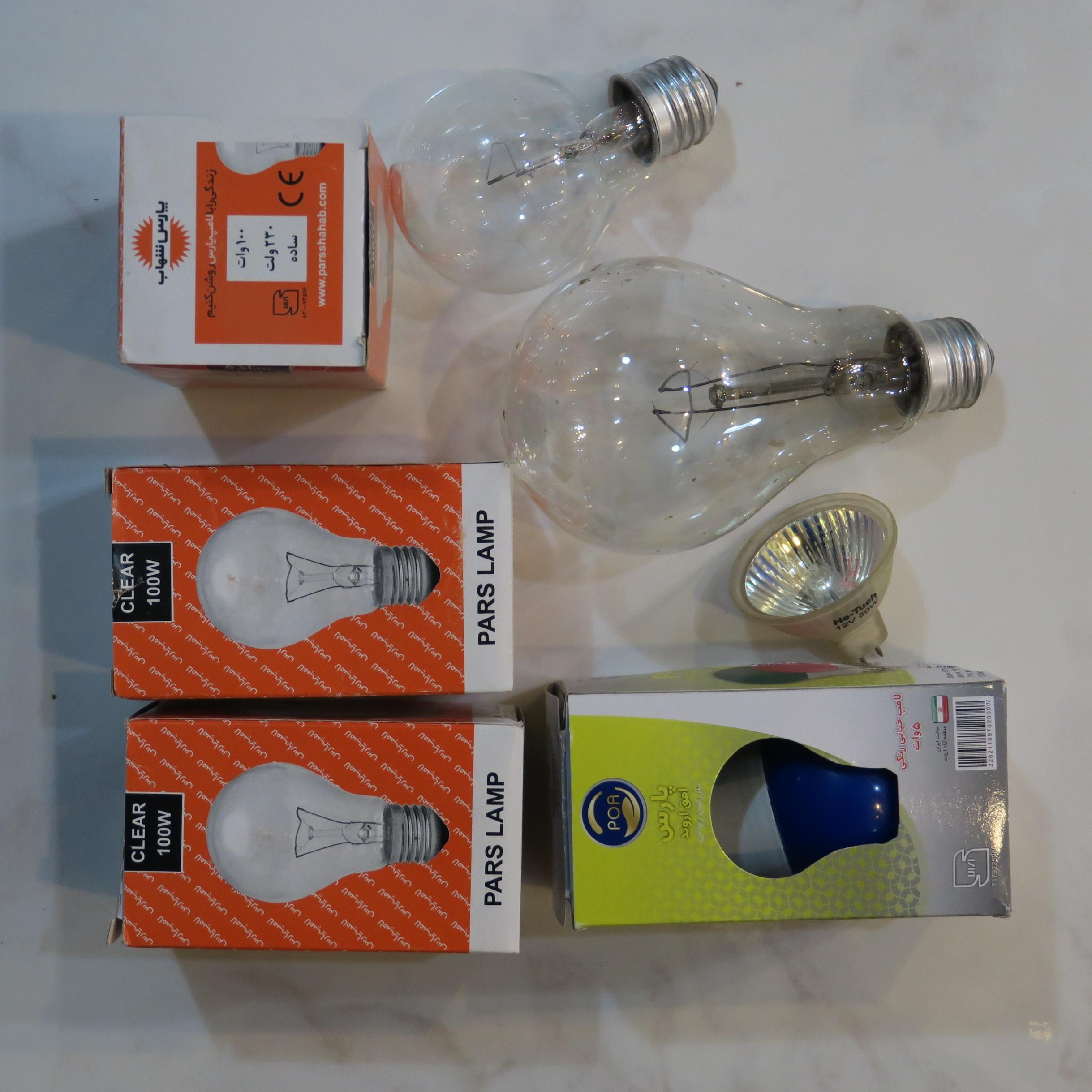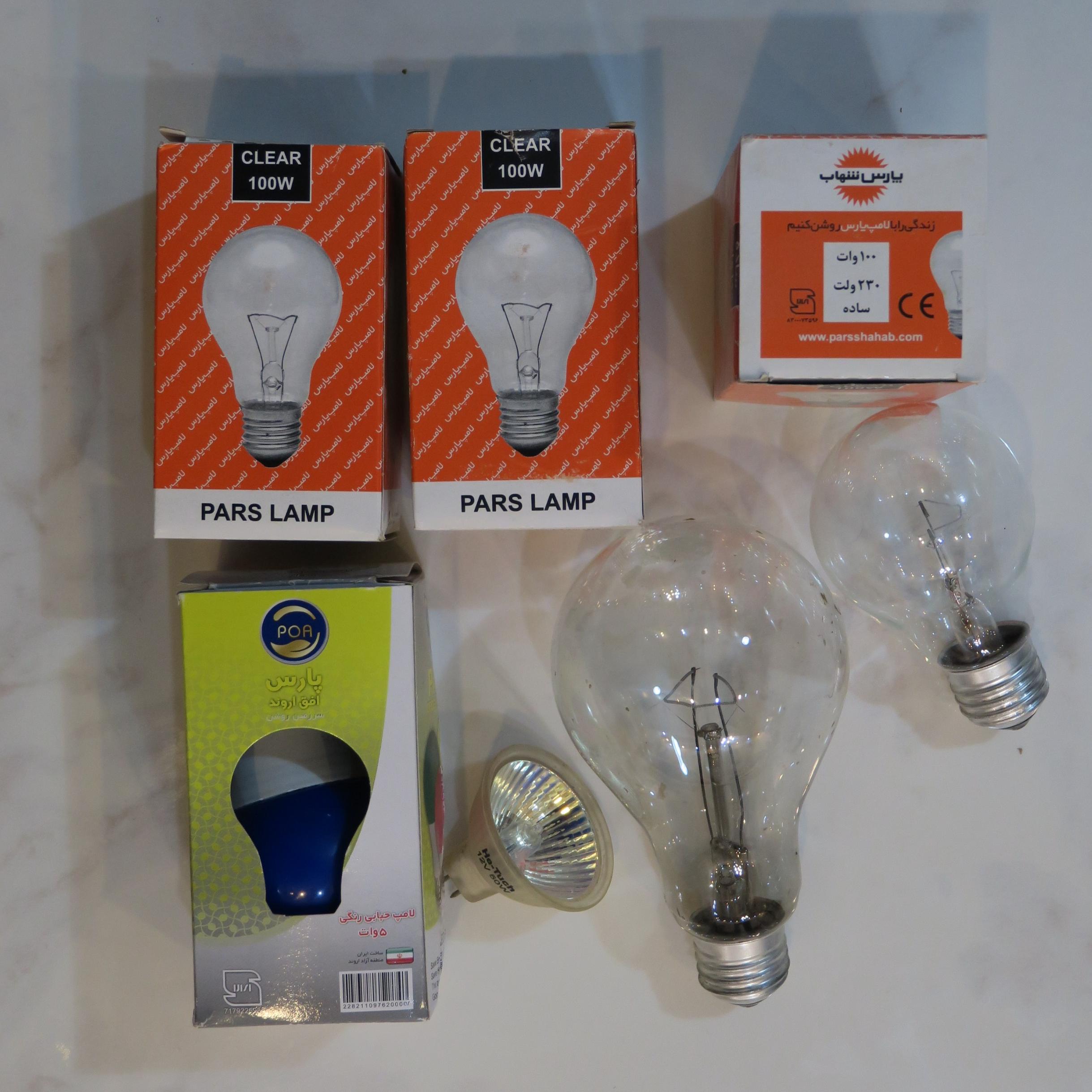 چهار عدد لامپ رشته ای ساده پارس شهاب 100وات نو (یکی کمی استفاده شده و کارتن ندارد).