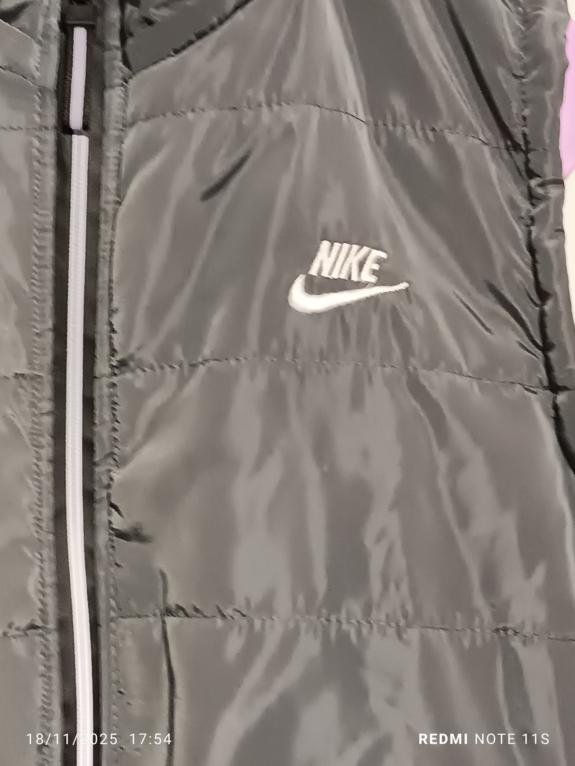 پافر کلاه دار با آرم سینه کلاه کاری شده نایک و زیپ های شب نما و بند قابل تنظیم کلاه و زیب جدا کننده کلاه قرمزی به فروش می رسد .