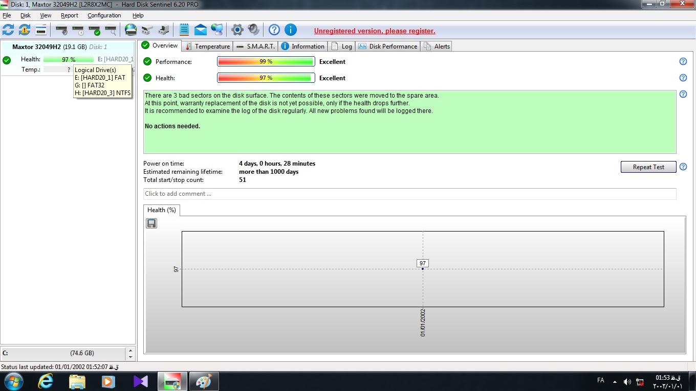 هارد 20 گیگ مکستور دارای پورت IDE کاملا تست شده سلامت 97 درصد