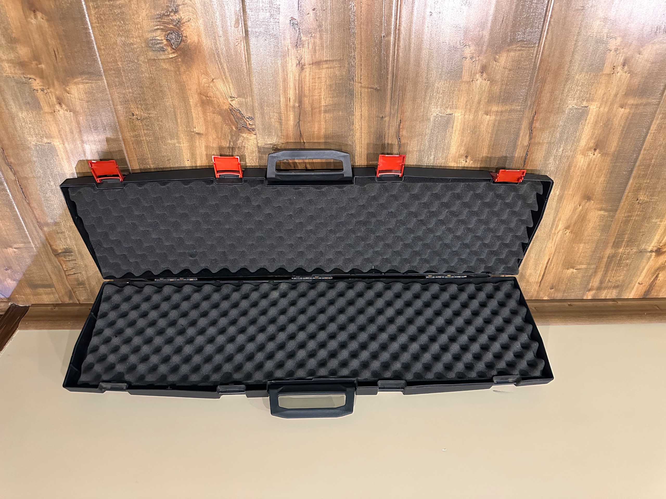 هارد کیس تفنگ شکاری و پی سی پی ، یه خورده گوشش تعمیر شده ولی خیلی معلوم نیست ، جنسش خوبه و اسفنج داخلشم سالم و حوبه