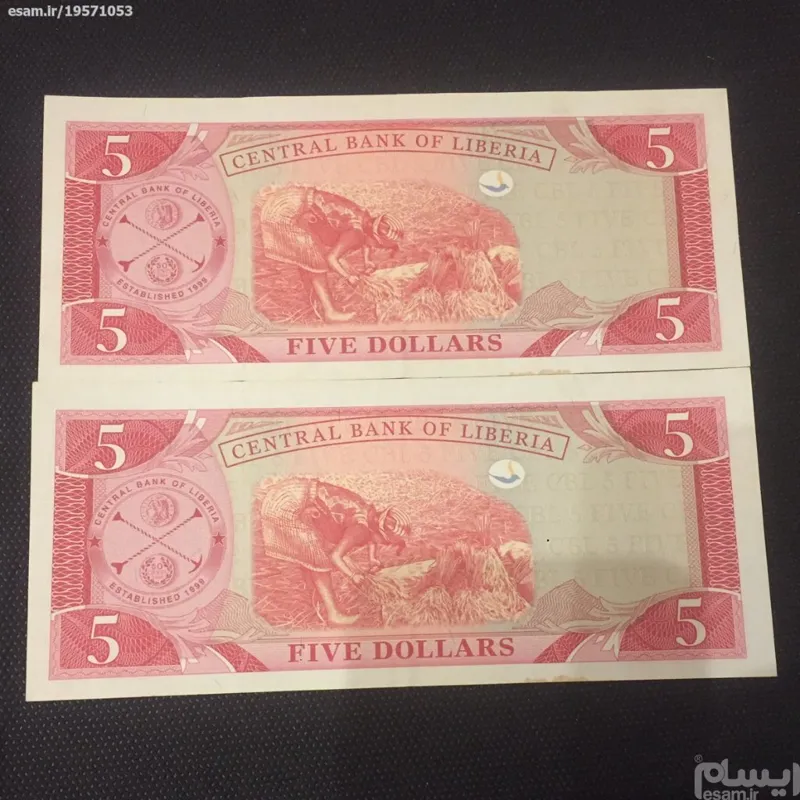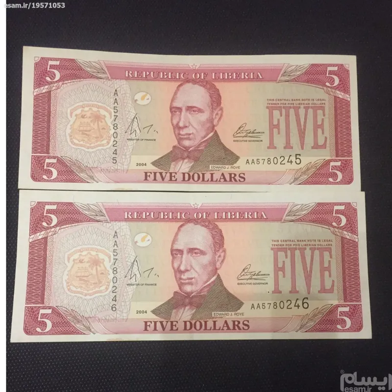 جفت اسکناس کمیاب کلکسیونی 5 دلاری لیبریا 2004