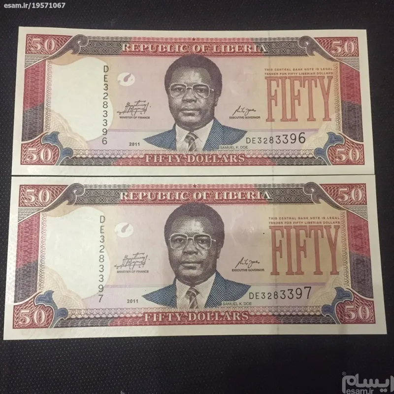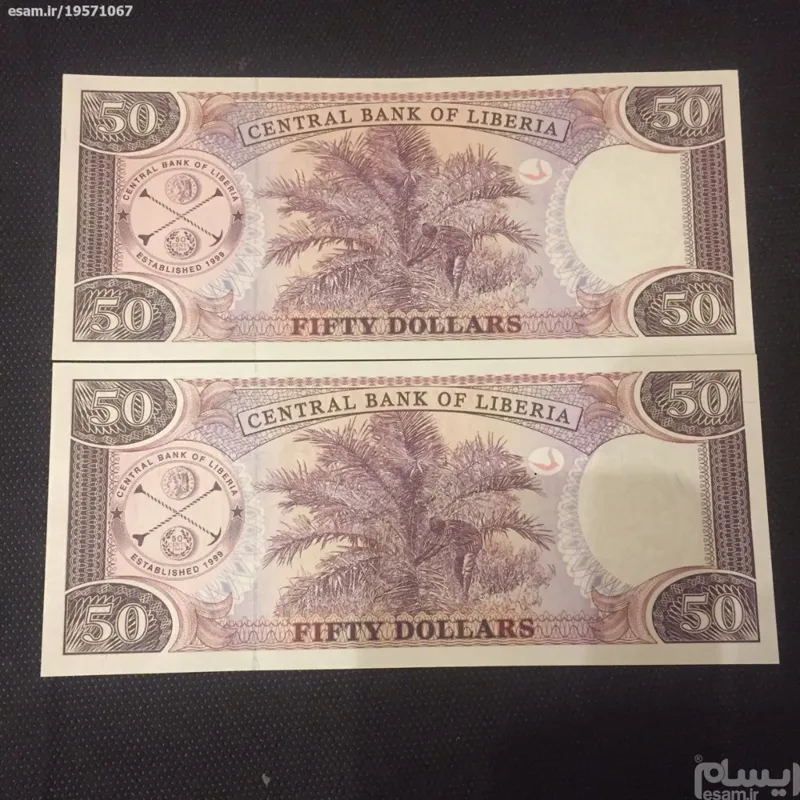 جفت بانکی اسکناس کمیاب کلکسیونی 50 دلاری لیبریا