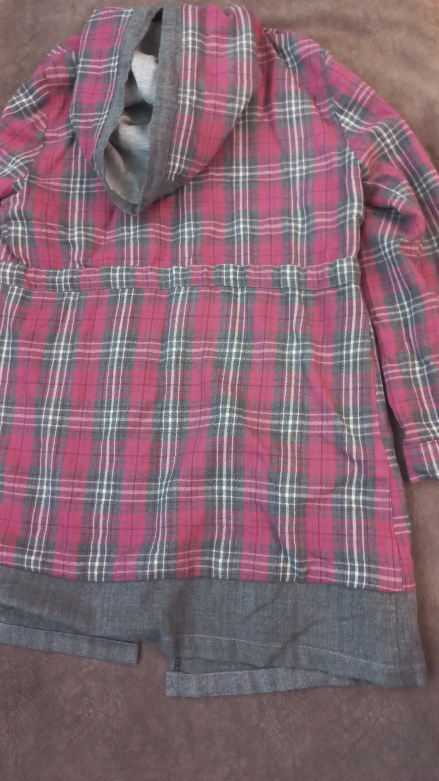 مانتو پاییزه کلاه دار چهارخونه صورتی طوسی سایز L