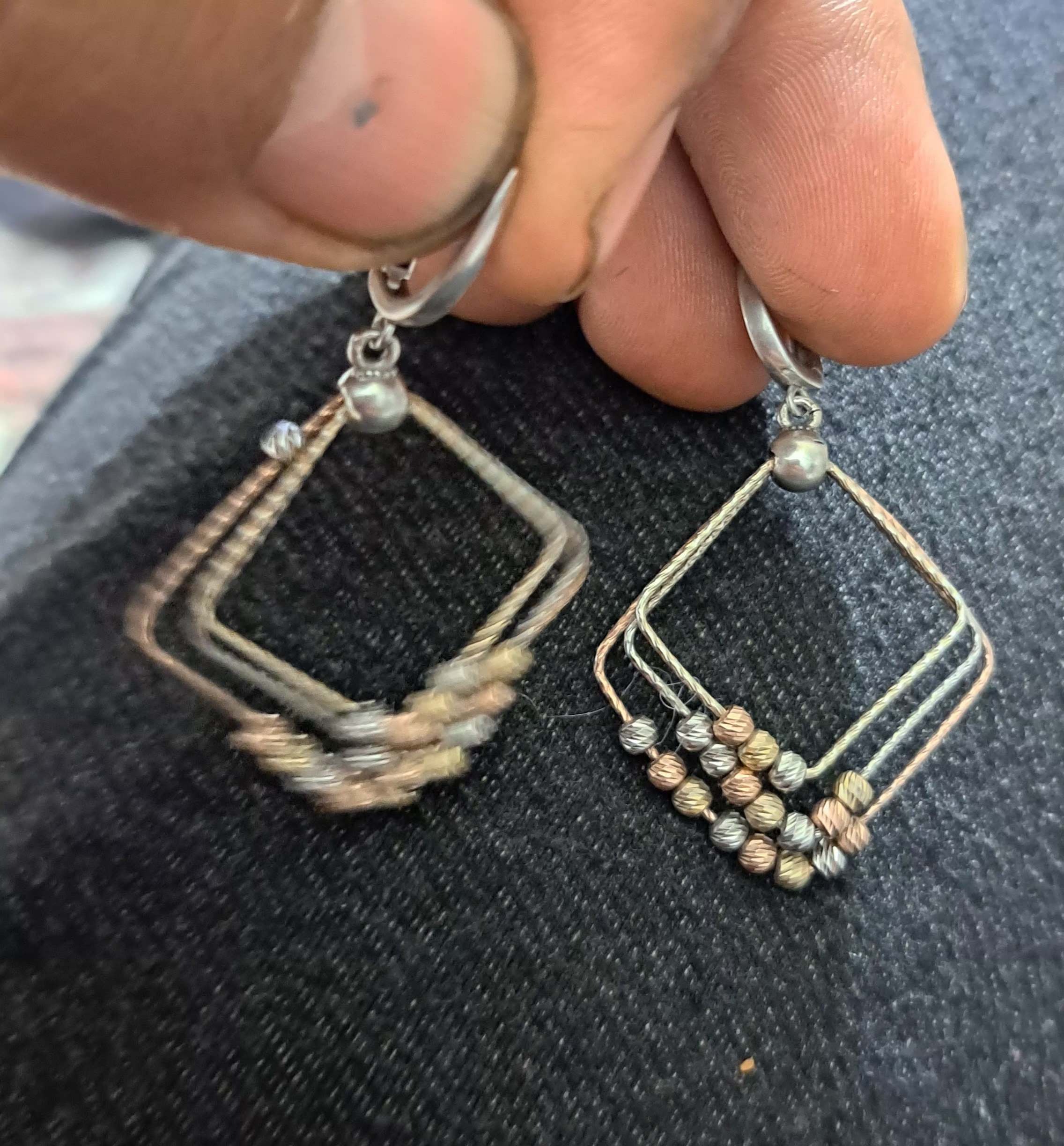 گوشواره نقره عیاربالا بسیارشیک و دستساز با وزن تقریبی 6گــرم .مغازه اینو گرمی 600هزار نمیده چون کار اجرت داری هست ولی من تقریبا نصف قیمت زدم ک بشه خیر خریدار