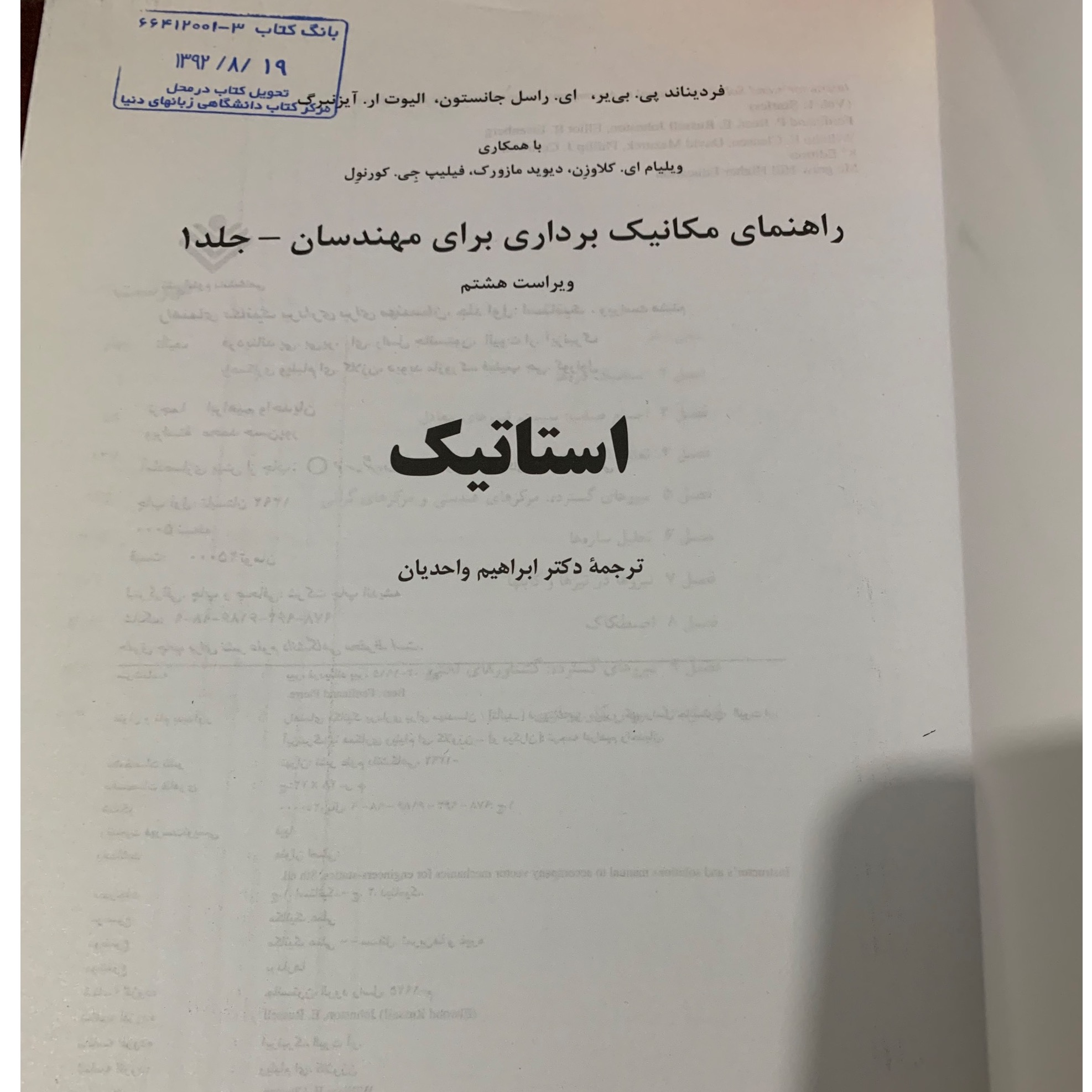 • مکانیک برداری برای مهندسان جلد 1 :