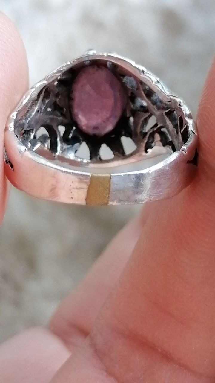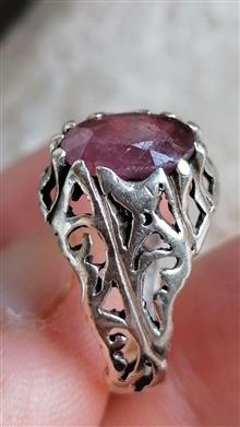 انگشتر نقره یاقوت قرمز اصل معدنی دستساز خط جوش زیر رکاب یا فلز دیگه بکار برده شده یا سایز عوض شده کار عالی و قیمت مناسب انهیت کاملا طبیعی سایز 60 وزن 4.94که میشه همون 5 گرم فیمت 2 با احترام مقطوع