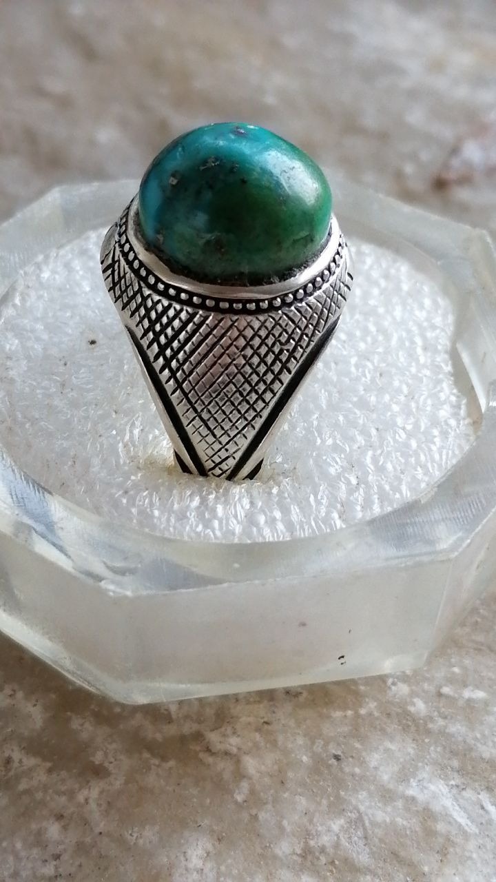 انگشتر نقره فیروزه نیشابور اصل معدنی رکاب دستساز و حصیری نسبتا کهنه سایز 63تا64 وزن 8.83گرم ابعادنگین 1.5در1.5سانت قیمت 2100