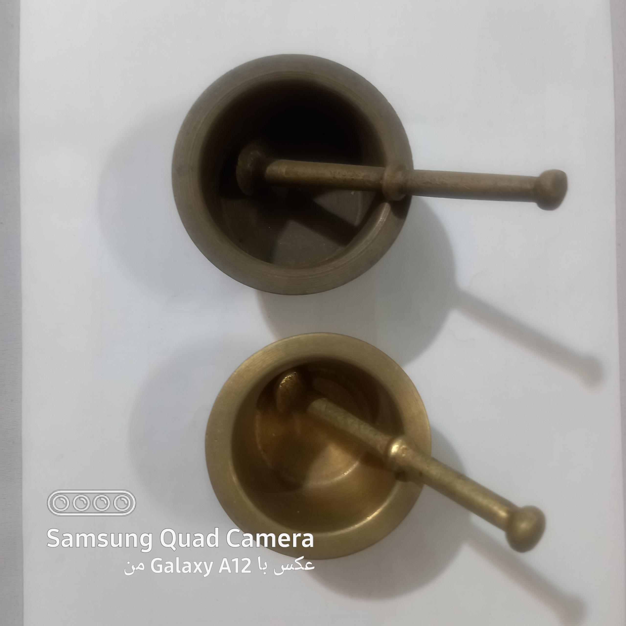 دو عدد هاون قدیمی جنس برنج وجنس خوب قدیم کوچک مناسب ساییدن زعفران ومشابه آن