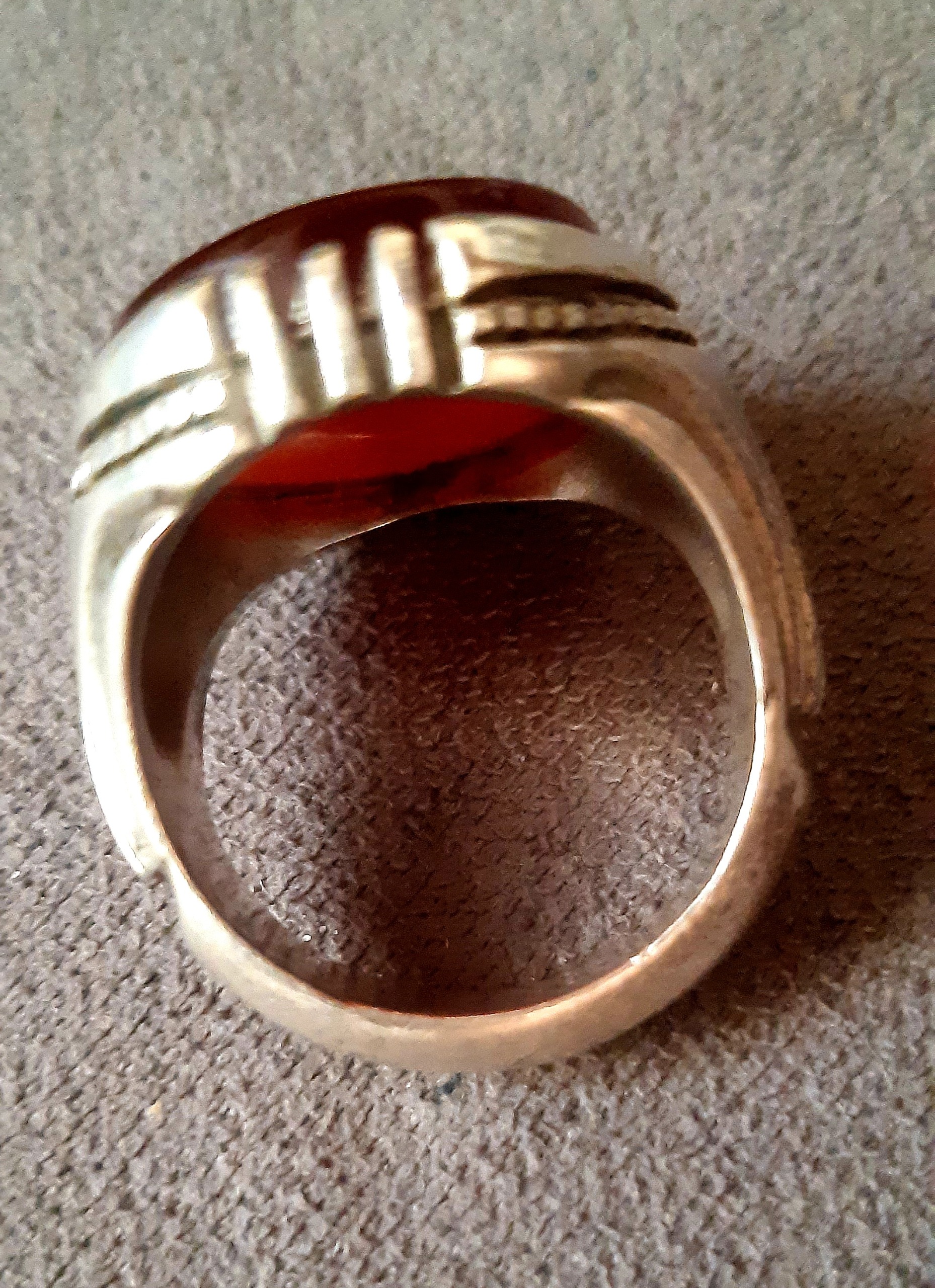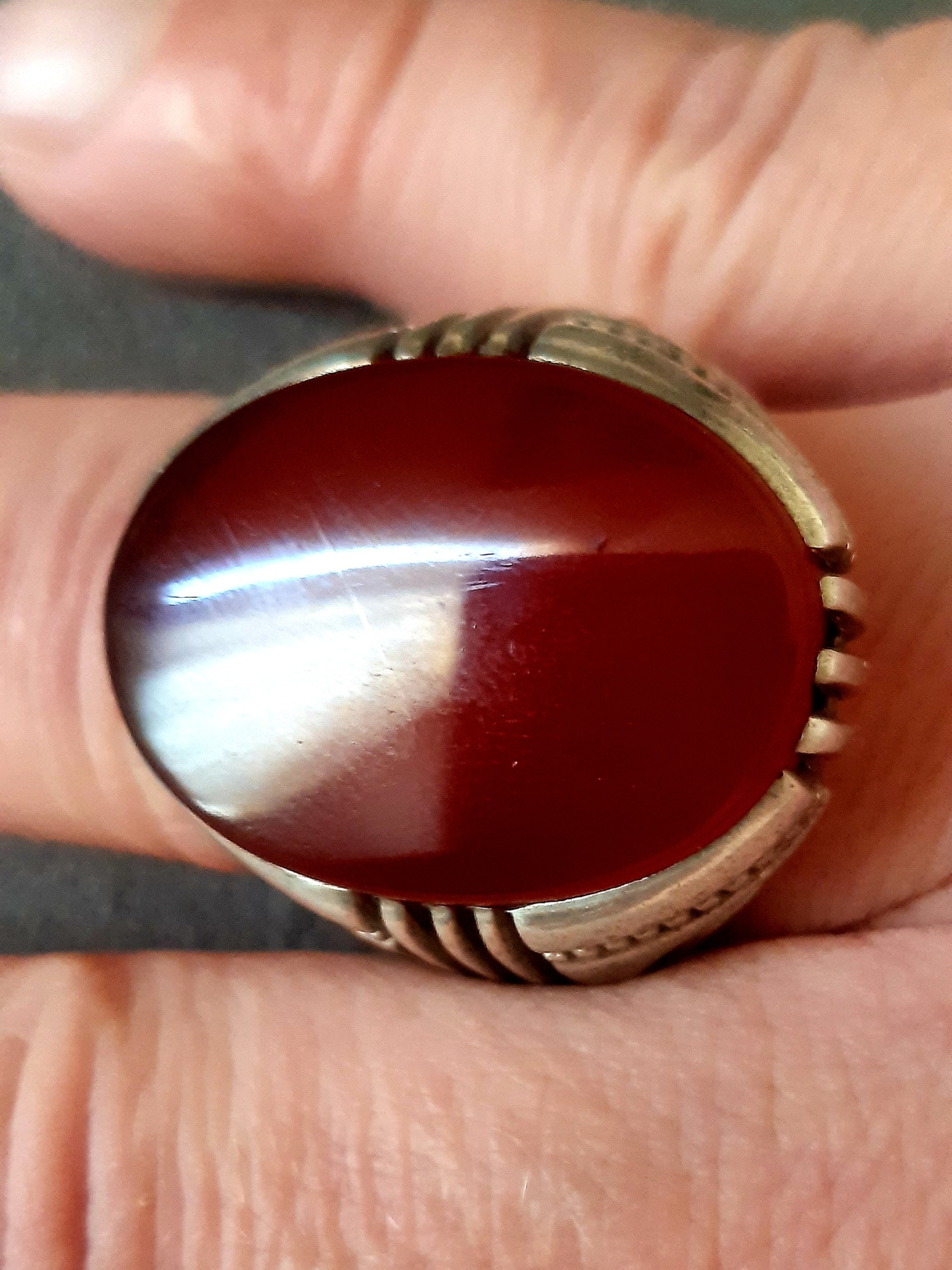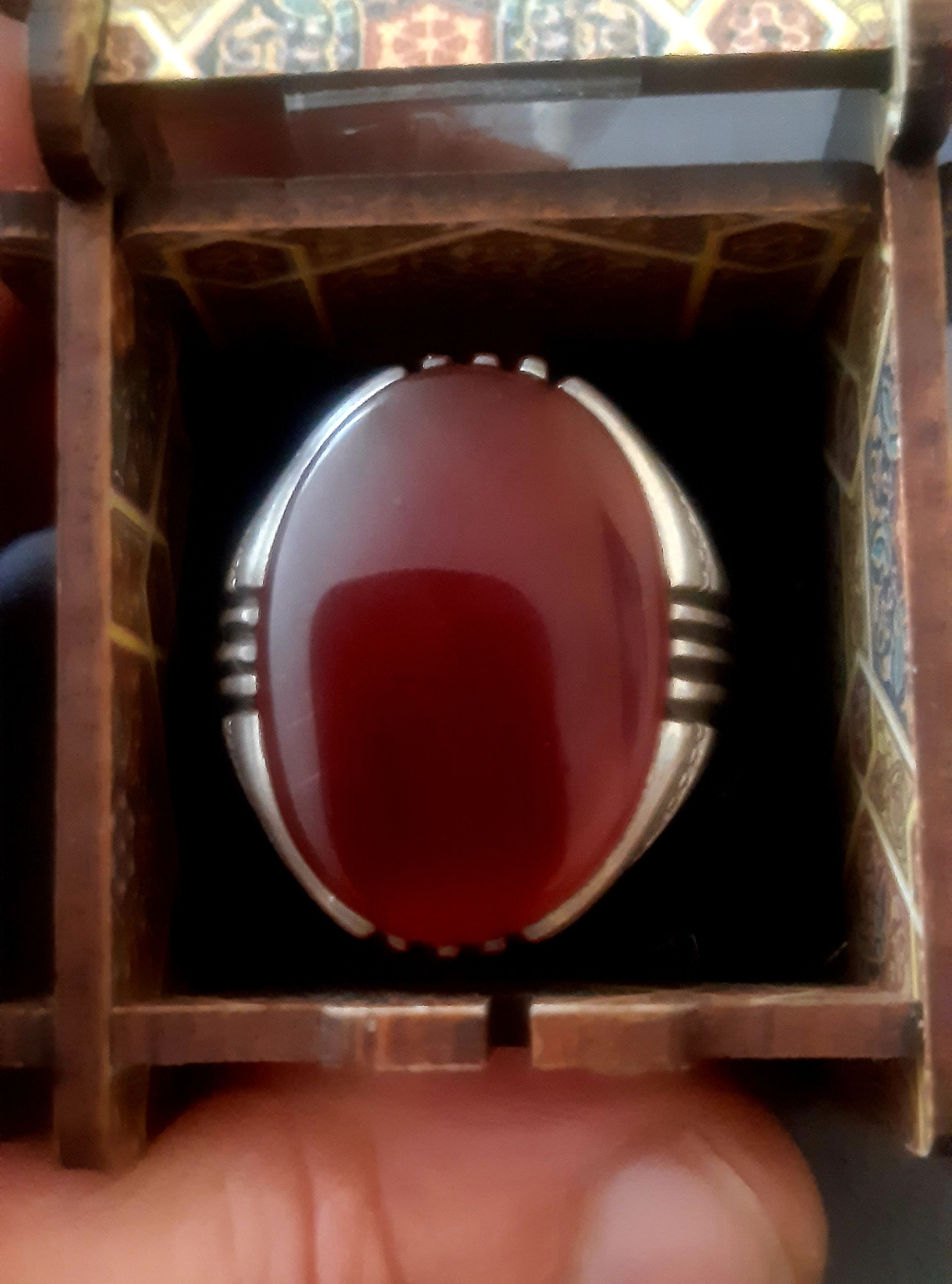 انگشتر ناب و کمیاب عقیق سرخ یمنی قدیمی با رکاب دستساز وزن 35گرم