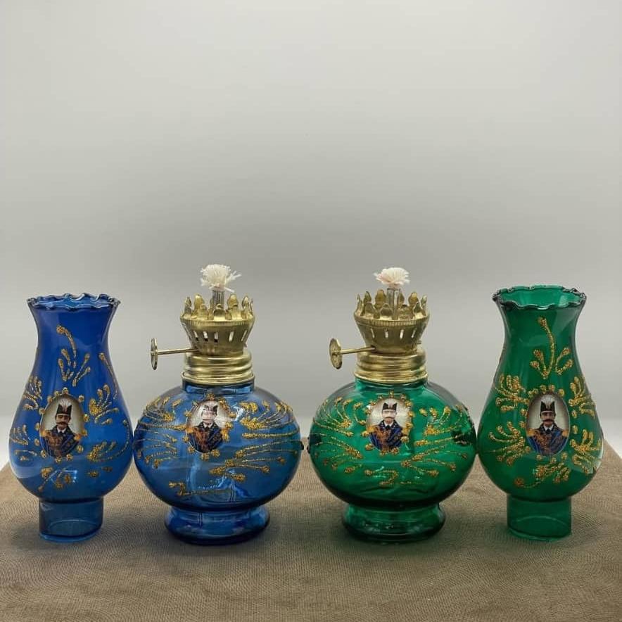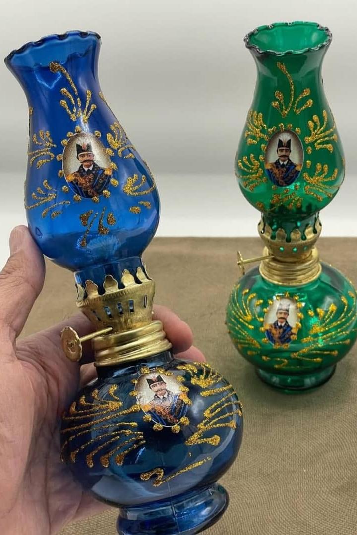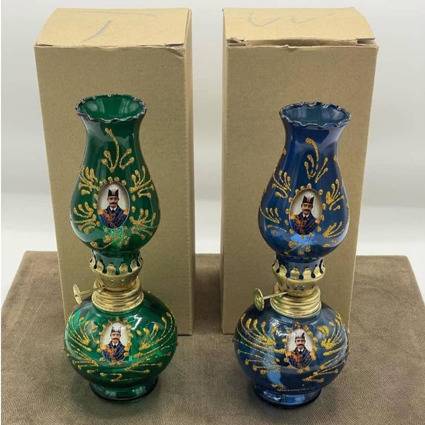 جفت چراغ نفتی (موشی) خوشرنگ و زیبا طرح شاه عباسی