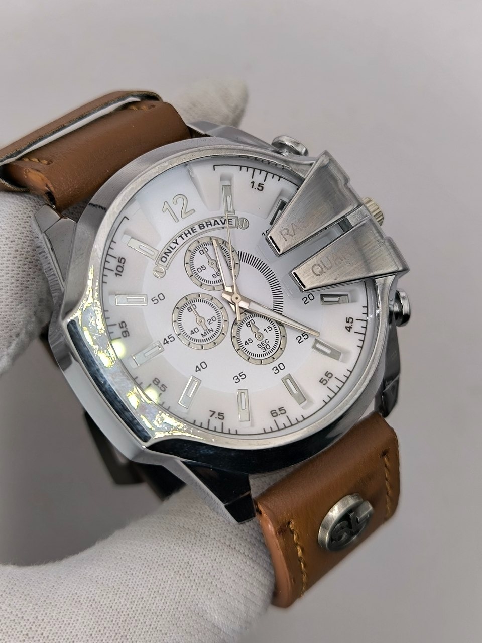 ساعت مچی دیزل DIESEL شاخدار بند چرمی موتور کوارتز