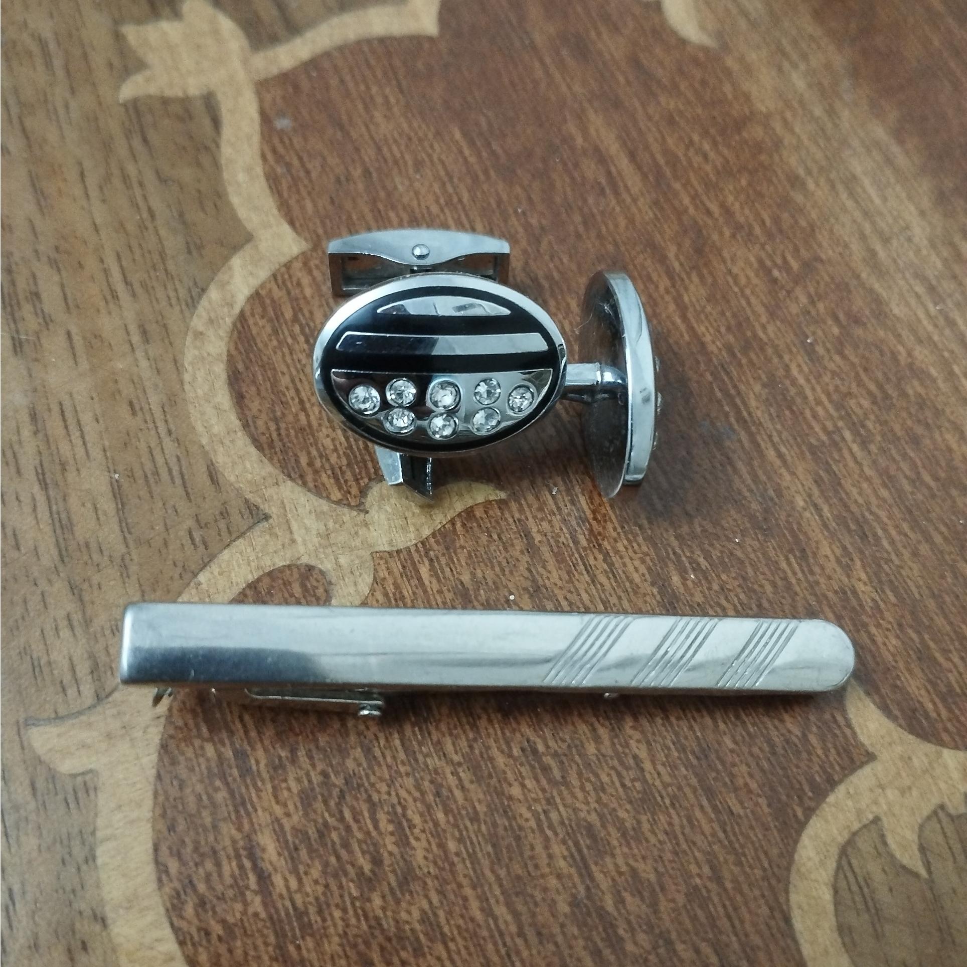 دو عدد دگمه سر آستین و یک عدد گیره کراوات